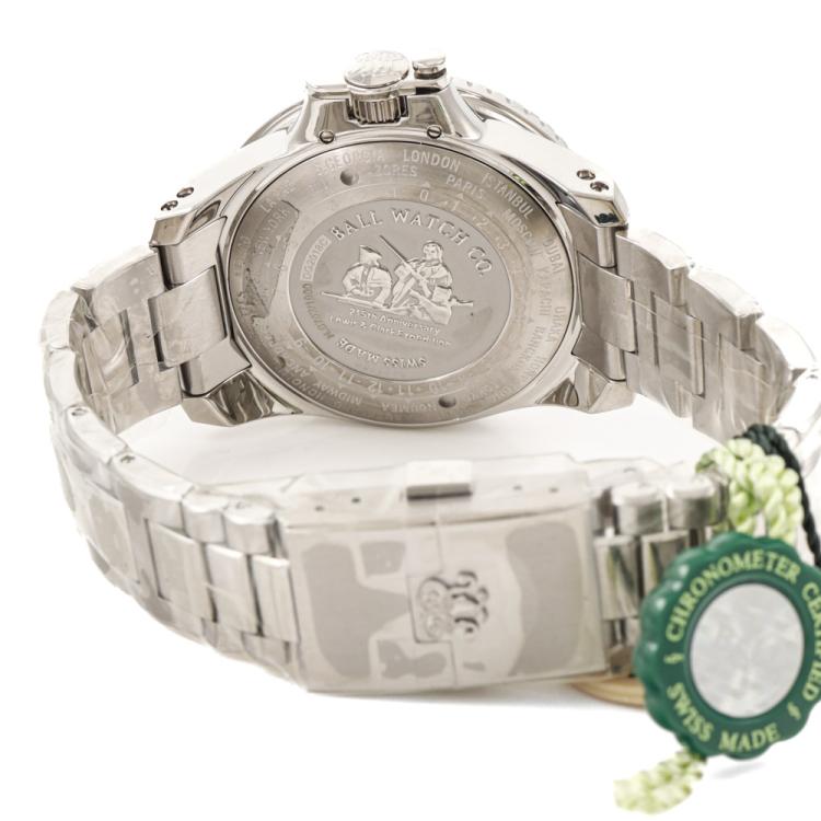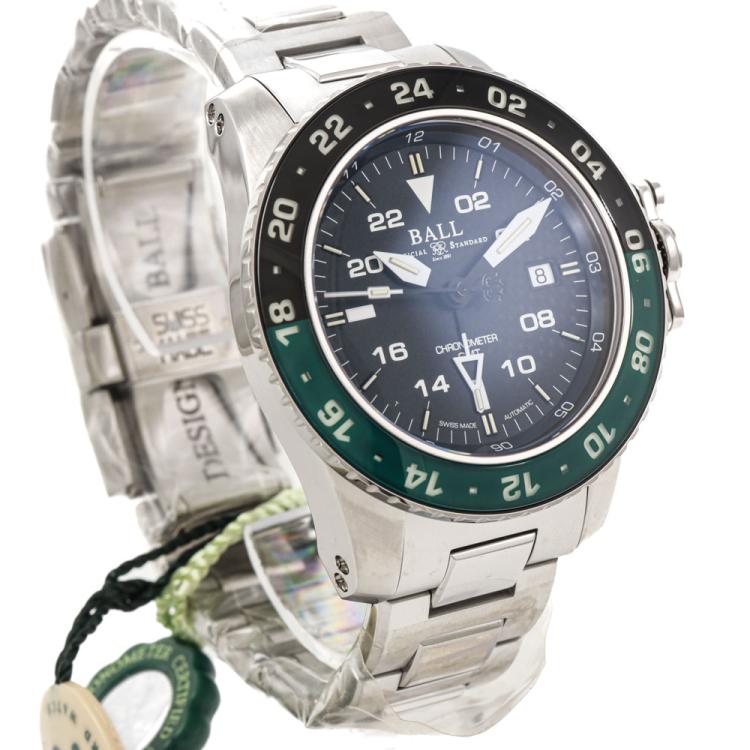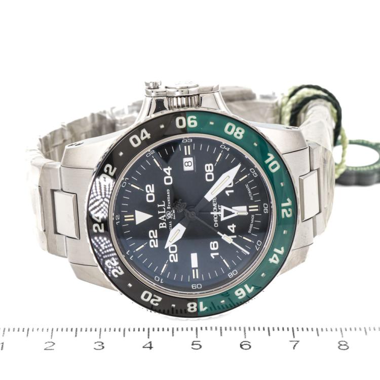 Ball Engineer Hydrocarbon AeroGMT II Limited Edition of 1000 stainless steel automatic mens watch. Black dial, date, case diameter: 42mm, wrist size: 20.5cm, Swiss made. Ref# DG2018C-S8C-BK. With Ball stainless steel bracelet and clasp. With Ball Limited Edition Certificate, Undated Ball Premium International Warranty Certificate card, Ball Chronometer Certificate card and Ball box. 12 month FSA warranty. (As new, Note: case and bracelet in original wrap)