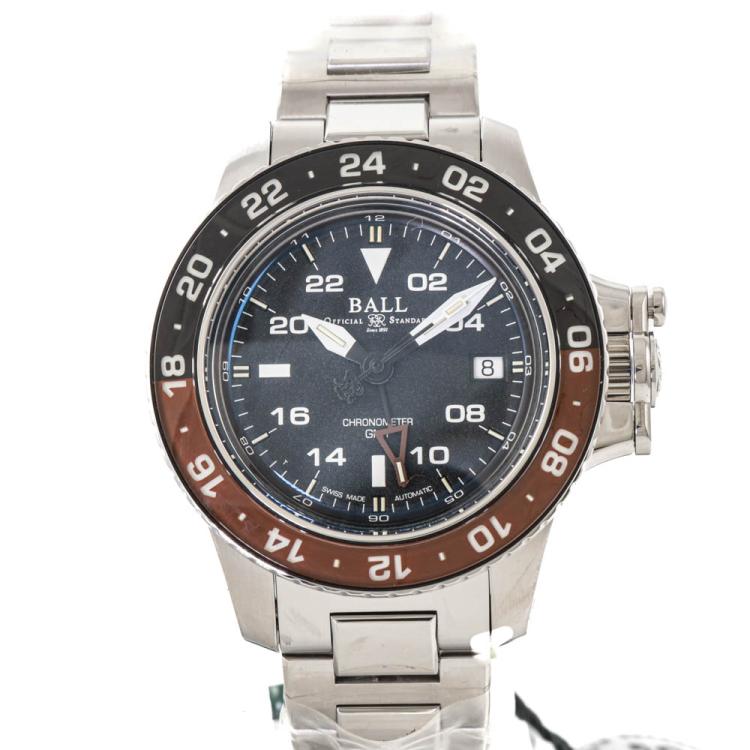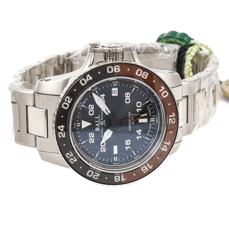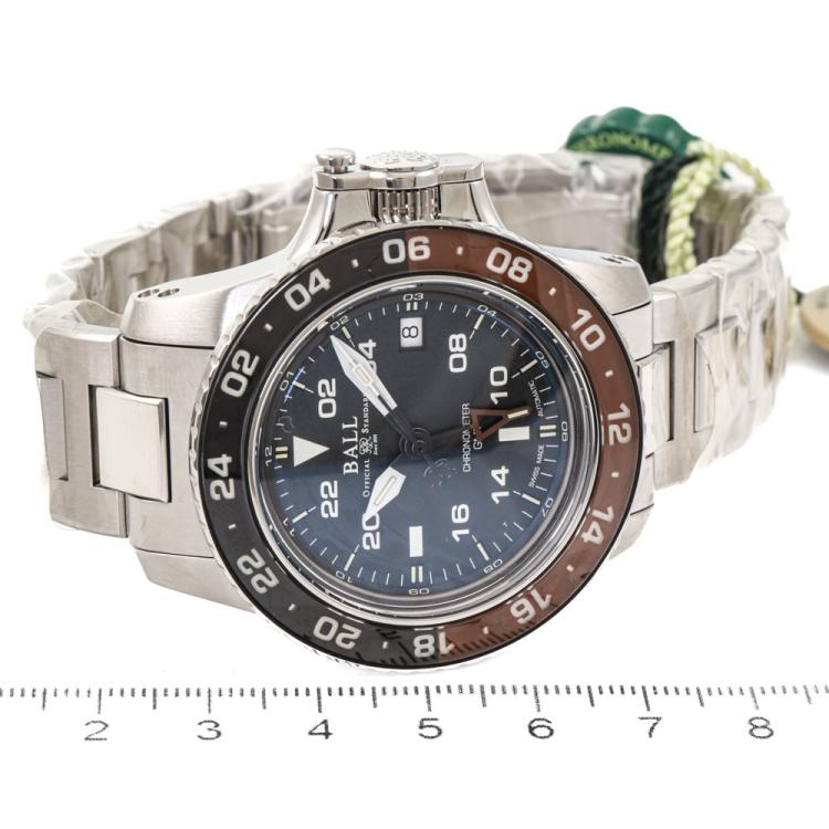 Ball Engineer Hydrocarbon AeroGMT II stainless steel automatic mens watch. Black dial, date, case diameter: 40mm, wrist size: 20cm, Swiss made. Ref# DG2118C-S12C-BK. With Ball stainless steel bracelet and clasp. With Undated Ball Premium International Warranty Certificate card, Ball Chronometer Certificate card and Ball box. 12 month FSA warranty (As new, Note: case and bracelet in original wrap)