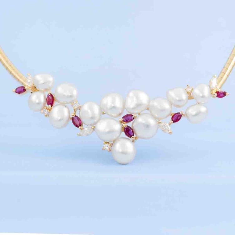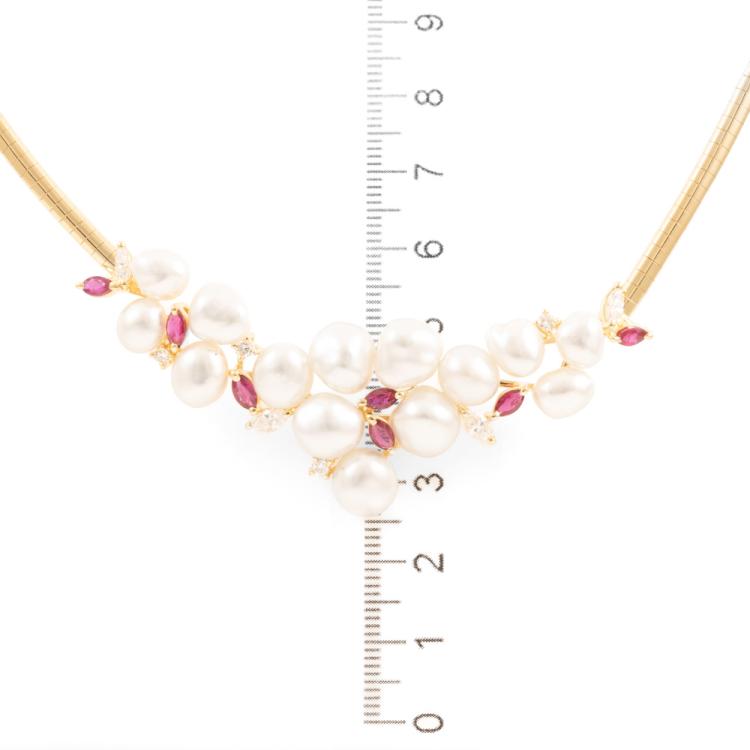 Baroque Pearl, Ruby & Diamond Necklace