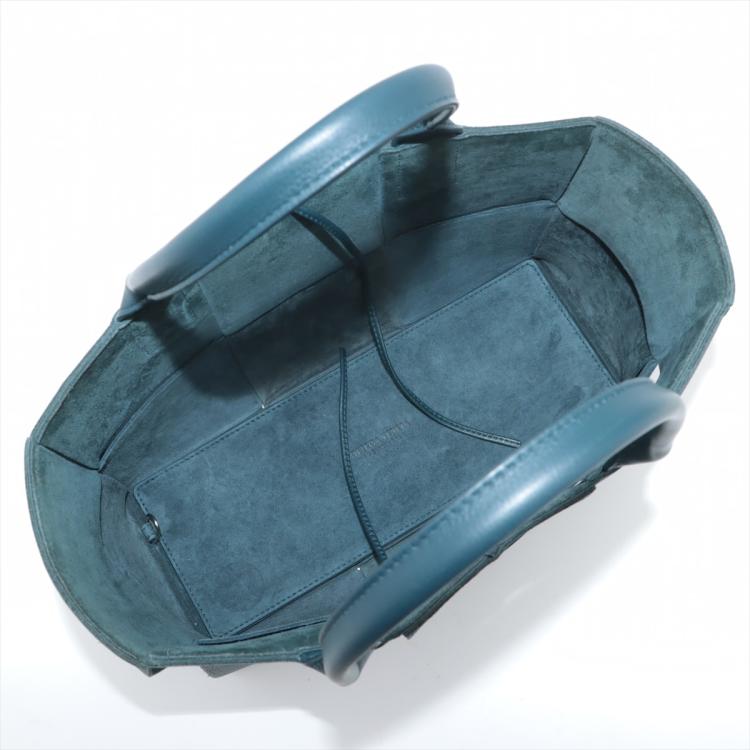 Bottega Veneta small Maxi Intrecciato Arco tote in woven navy blue calfskin leather. Featuring silver-toned hardware, dual leather handles, and a detachable zipper pocket. The leather string closure opens to a blue microfibre interior. Approximate dimensions: 30cm(L) x 20cm(H) x 11.5cm(D), handle drop 16cm. Accompanied by Bottega Veneta dustbag. With Entrupy Certificate of Authenticity. (Pre-owned)