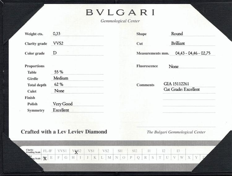 Bvlgari 0.33ct Diamond Solitaire GIA D VVS2