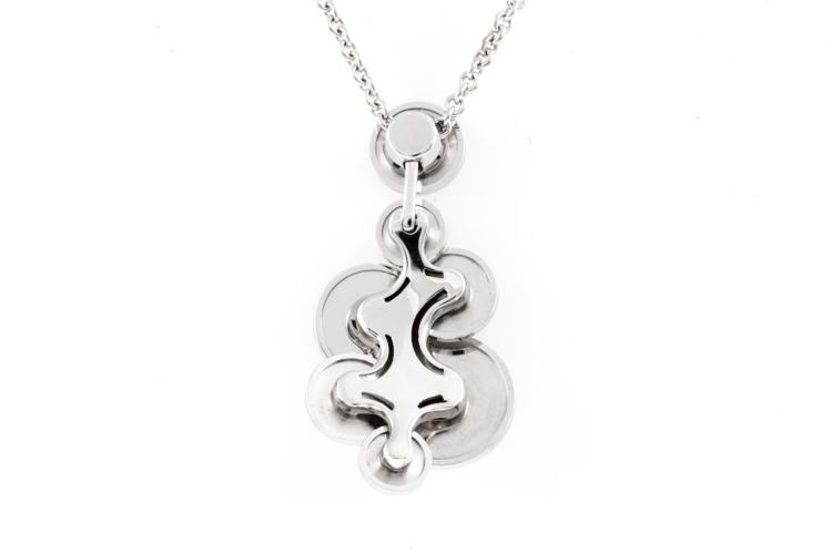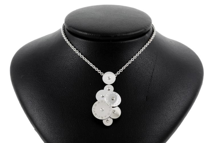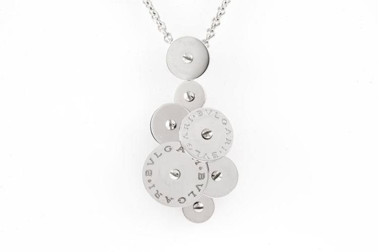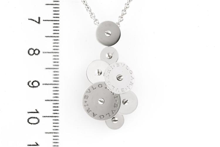 Bvlgari Cicladi rotating disc pendant. 18ct white gold with 45cm Bvlgari 18ct white gold adjustable chain. Weight: 15.2g. (Pre-owned)