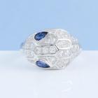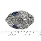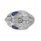 Bvlgari Serpenti Seduttori ring with 2 blue Natural Sapphire eyes totalling approximately 0.40ct and pave set round Natural Diamonds totalling approximately 0.70ct (Estimated grading: F-G VS). 18ct white gold. Made in Italy. Ring size L1/2 - ring resizing is not recommended. Weight: 8.2g. With Bvlgari Authenticity card dated 18/01/21 and Bvlgari box. (Pre-owned)