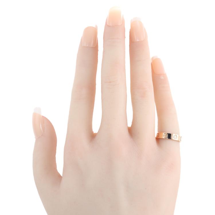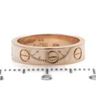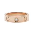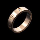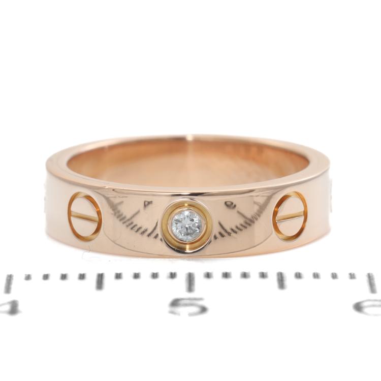 Cartier Love Wedding Band ring with a round Diamond of 0.02ct. 18ct rose gold. Cartier stamped size 44. Ring size: E1/2 - resizing is not recommended (Note: ring size very small). Band width: 4mm. Weight: 3.9g (Pre-owned)