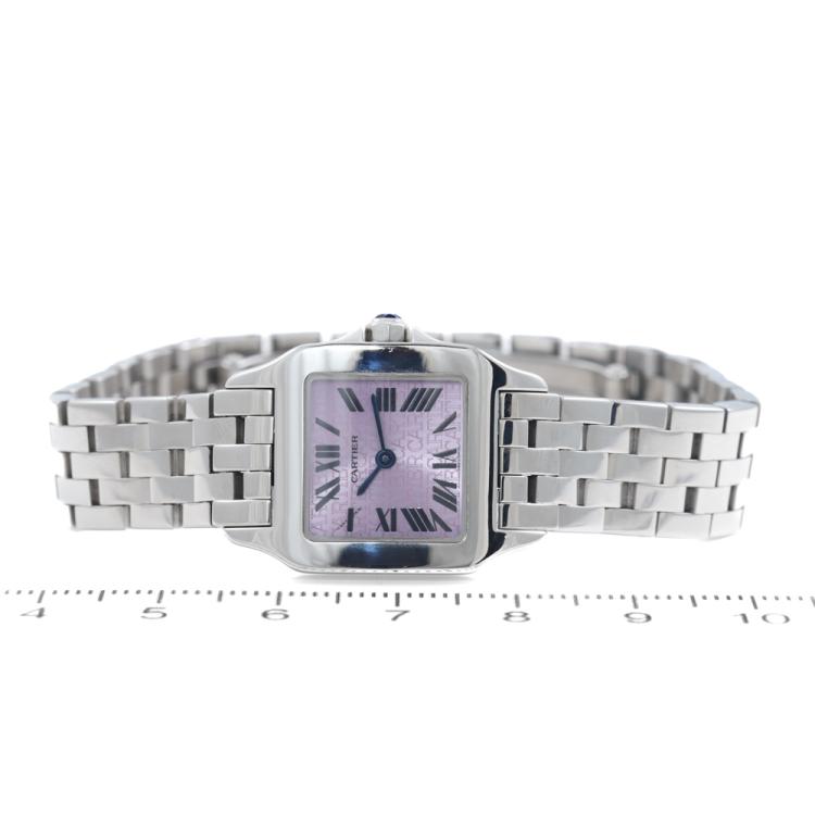 Cartier Santos Demoiselle 2008 Christmas Limited Edition stainless steel quartz ladies watch. Purple dial, approximate case diameter: 20mm x 19mm, wrist size: 16cm, Swiss made. Ref# W2510002. With Cartier stainless steel bracelet and clasp. Certificate of Authenticity and Cartier pouch. 3 month FSA warranty (Pre-owned)