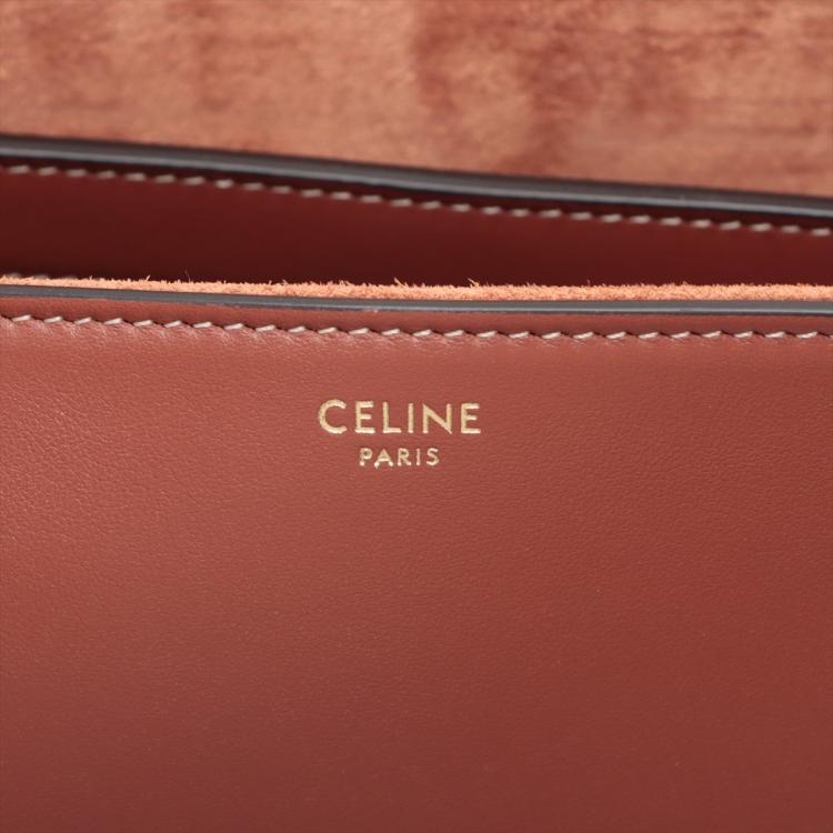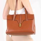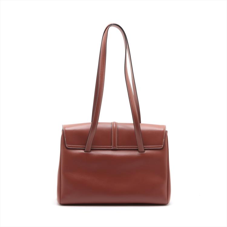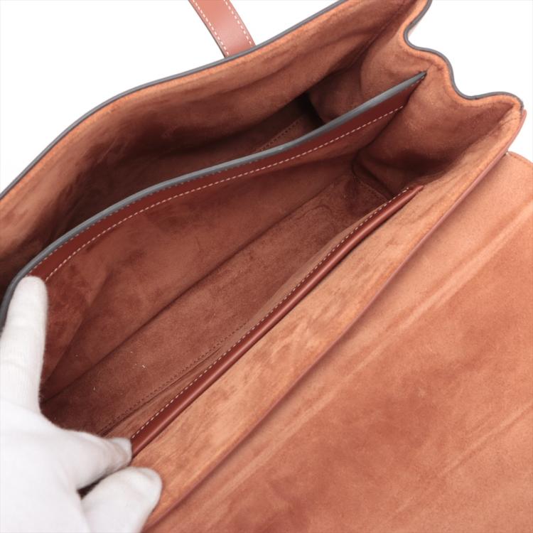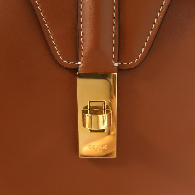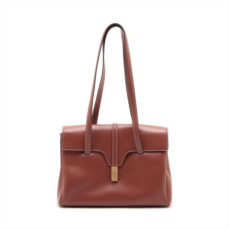 Celine medium soft 16 should bag in brown smooth calfskin leather. Featuring gold-toned hardware, and double tall flat handles. The turn-lock on flip over flap opens to a light-brown suede calfskin lining two large compartments with a patch pocket. Approximate dimensions: 32.5cm(Base-L) x 24cm(H) x 13cm(D), handles drop 30cm. With Entrupy Certificate of Authenticity. (Pre-owned)