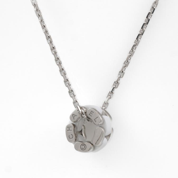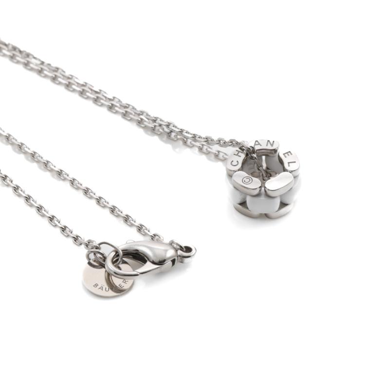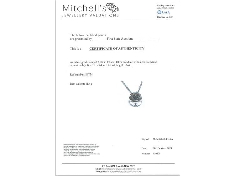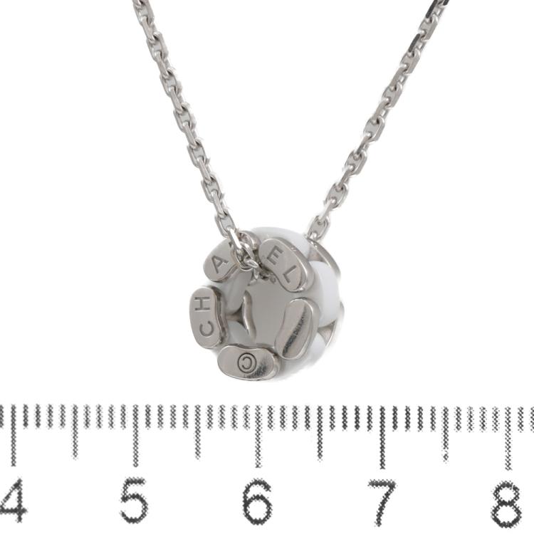 Chanel Ultra Necklace with white ceramic. Motif size: 12.1mm x 7mm. 18ct white gold with 44cm 18ct white gold chain. Weight: 11.4g. With Certificate #419309. (Pre-owned)