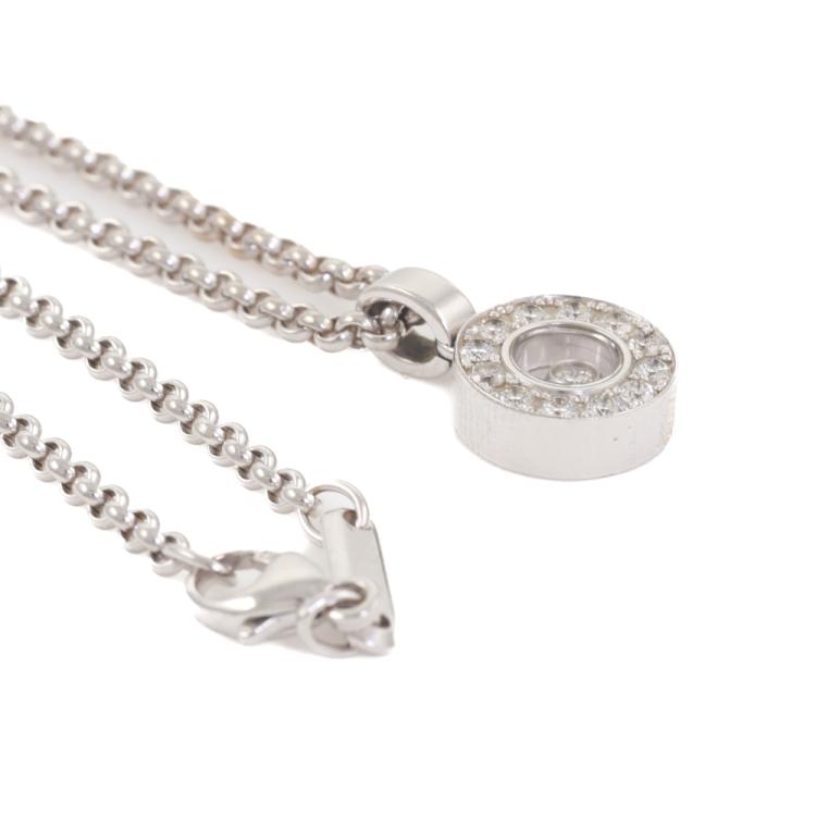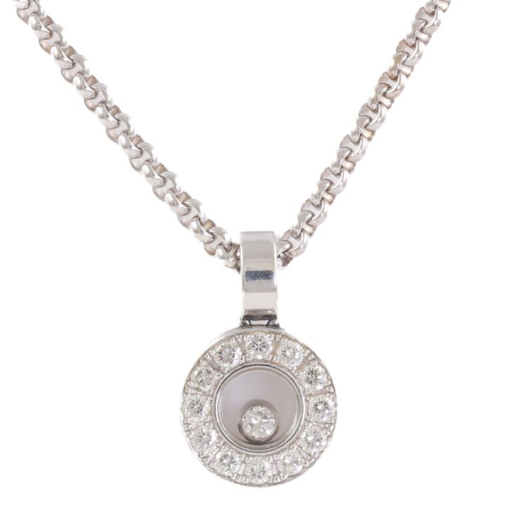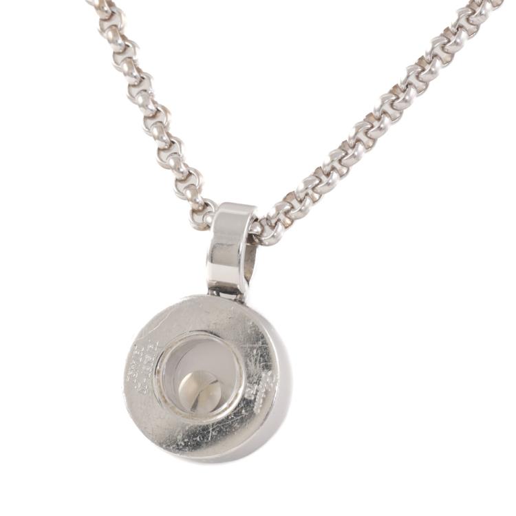 Chopard Happy Diamond Icons pendant with 1 floating Natural Diamonds and surrounding Natural Diamonds totalling 0.29ct. 18ct white gold with 18ct white gold 42.5cm Chopard chain. Pendant length: 15.4mm. Pendant diameter: 10mm. Weight: 11.8g. (Pre-owned)