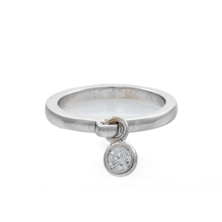 Christian Dior Coquine Diamond ring with a round natural Diamond of approximately 0.25ct. 18ct white gold. Dior stamped size 48, I - ring resizing is not recommended. Band width: 2.0mm. Weight: 3.2g. (Pre-owned)