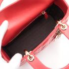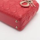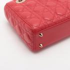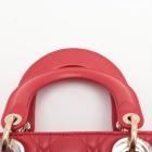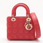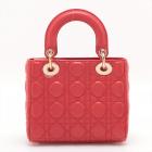Christian Dior Small My Lady ABCDior in red lambskin leather with Cannage quilting. Featuring gold-toned hardware, double leather handles, and "DIOR" leather charms. The flap on top opens to a brown logo-printed textile interior with a zipper and patch pockets. Approximate dimensions: 20.5cm(L) x 17cm(H) x 8.5cm(D), handle drop 8cm, detachable and adjustable strap drop 56cm. With Entrupy Certificate of Authenticity. (Pre-owned)