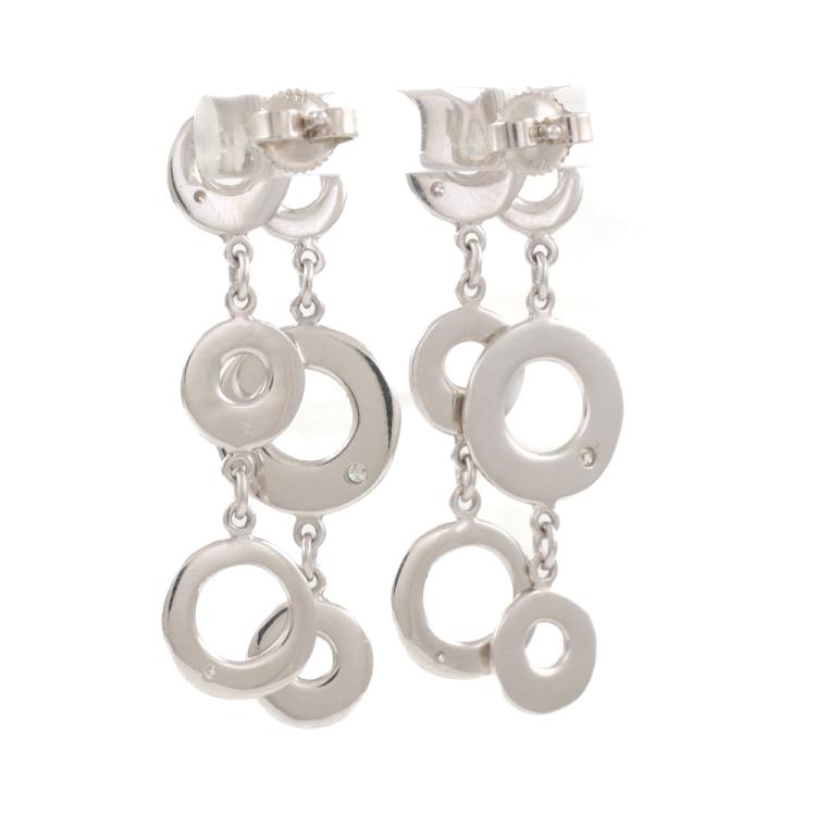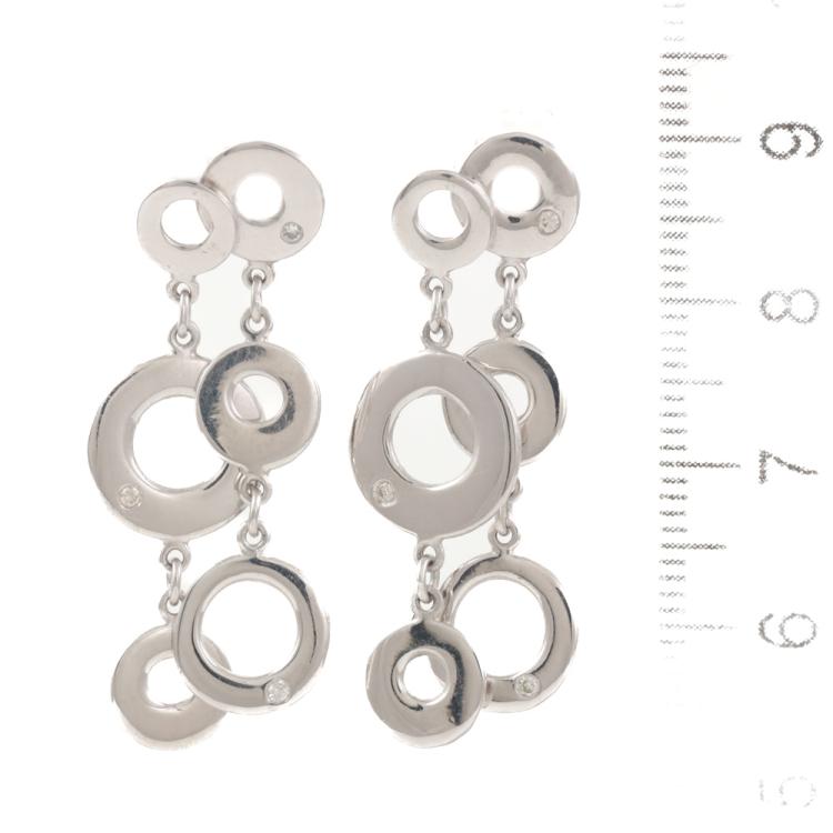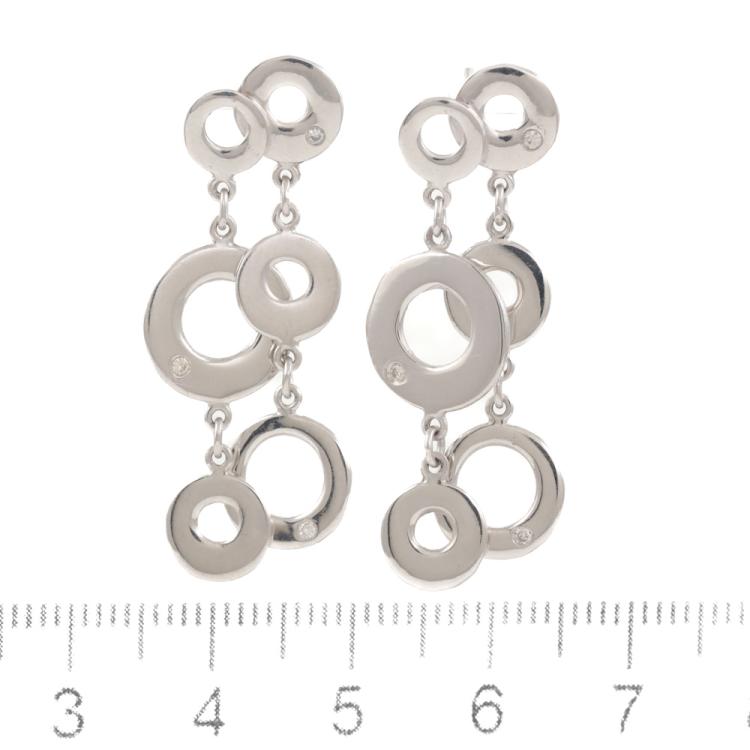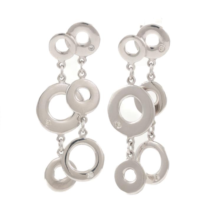 Circular design drop earrings with 6 round Natural Diamonds totalling approximately 0.06ct. 18ct white gold with 14ct white gold butterflies. Drop length: 3.3cm. Weight: 6.2g. (Pre-owned)