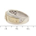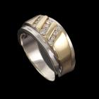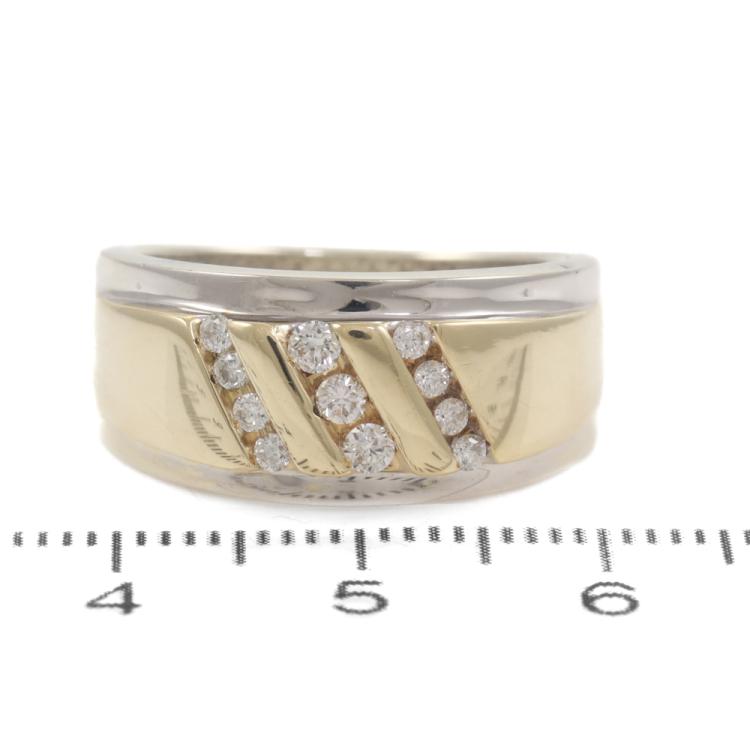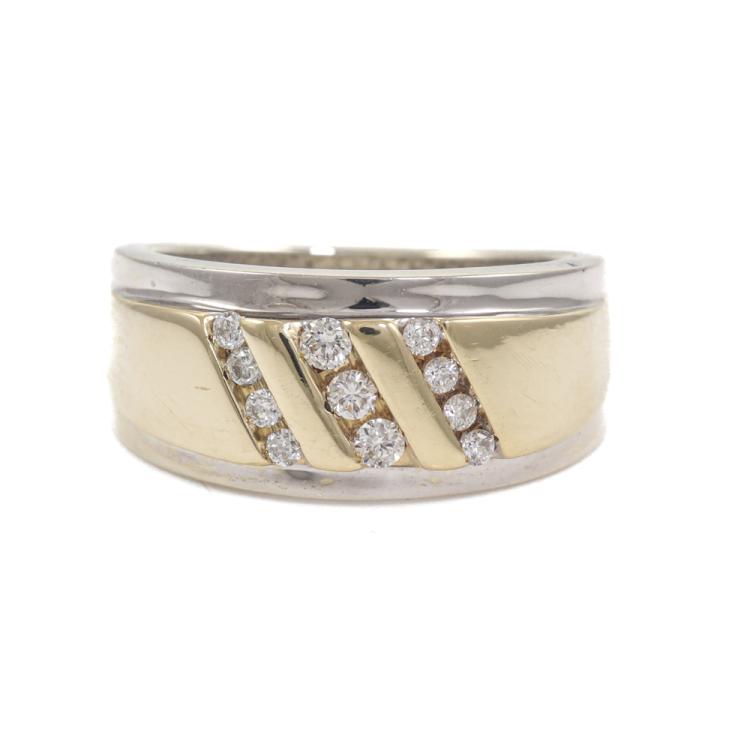 Diamond ring with round Natural Diamonds totalling 0.25ct. 9ct yellow and white gold. Ring size P. Band width: 4.0mm - 7.0mm. Weight: 9.3g. Inscripted "L.G.". (Pre-owned)