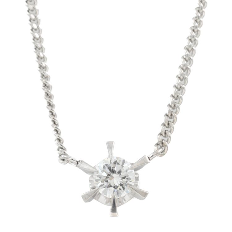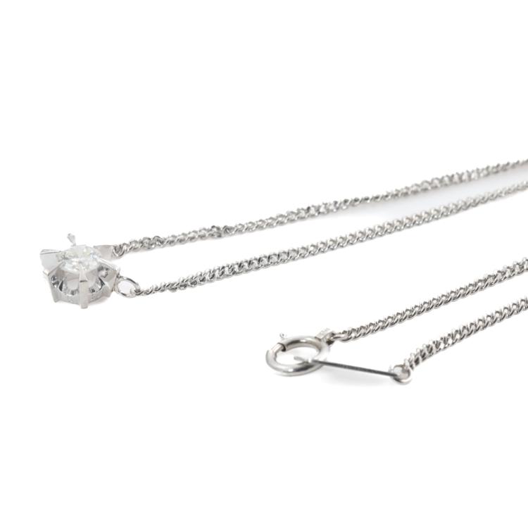 Diamond pendant with round Natural Diamond of 0.29ct. Platinum - 850 with platinum 850 attached chain. Length: 39.5cm. Weight: 4.7g. (Pre-owned)