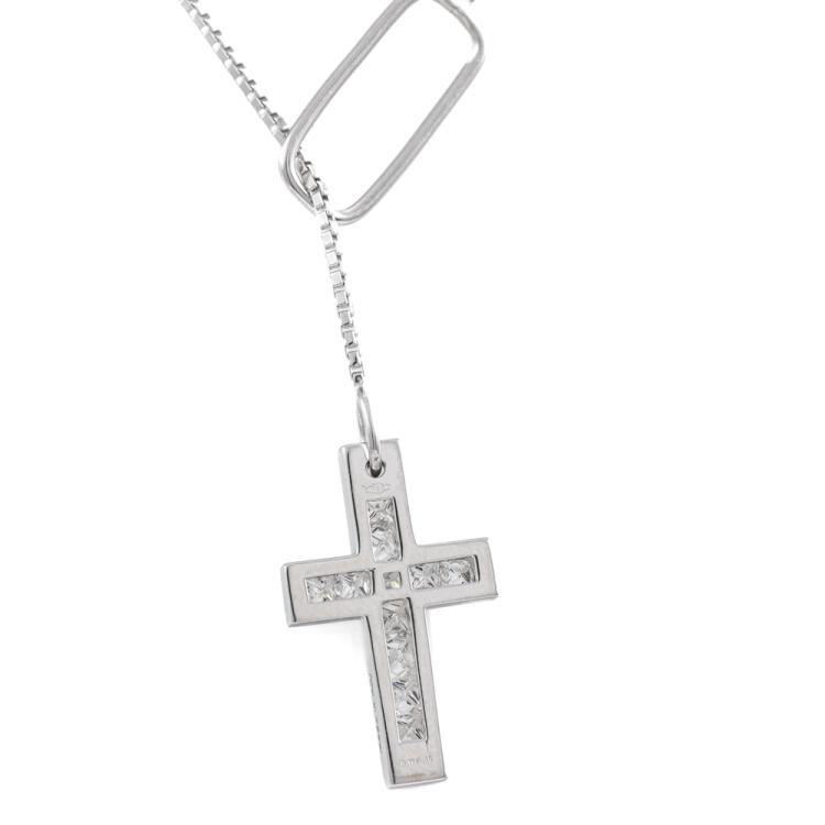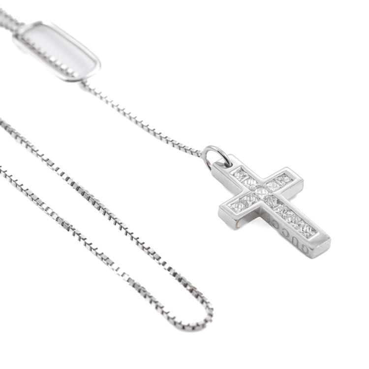 Gucci Cross Diamond Lariat Necklace with 11 princess cut Natural Diamonds totalling approximately 0.33ct. Pendant dimension: 20.1mm x 12.4mm. Made in Italy. 18ct white gold. Length: 54cm chain. Weight 6.3g. (Pre-owned)