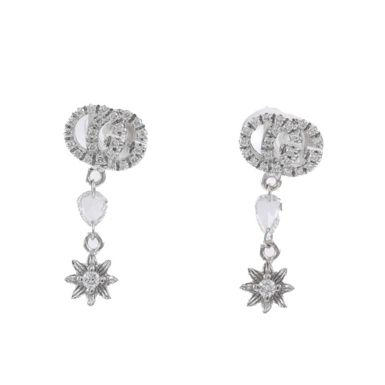 Gucci Diamond Flora GG Drop Earrings with round & fancy shape Natural Diamonds totalling 0.12ct. 18ct white gold with unbranded 18ct white gold backs. Drop length: approximately 1.7cm. Made in Italy. Weight: 1.9g. (Pre-owned)