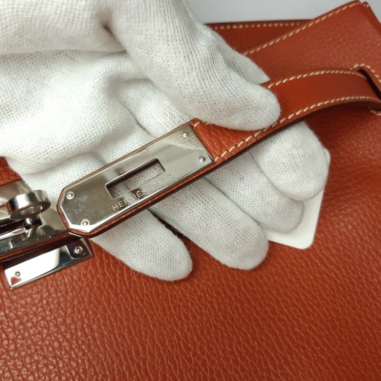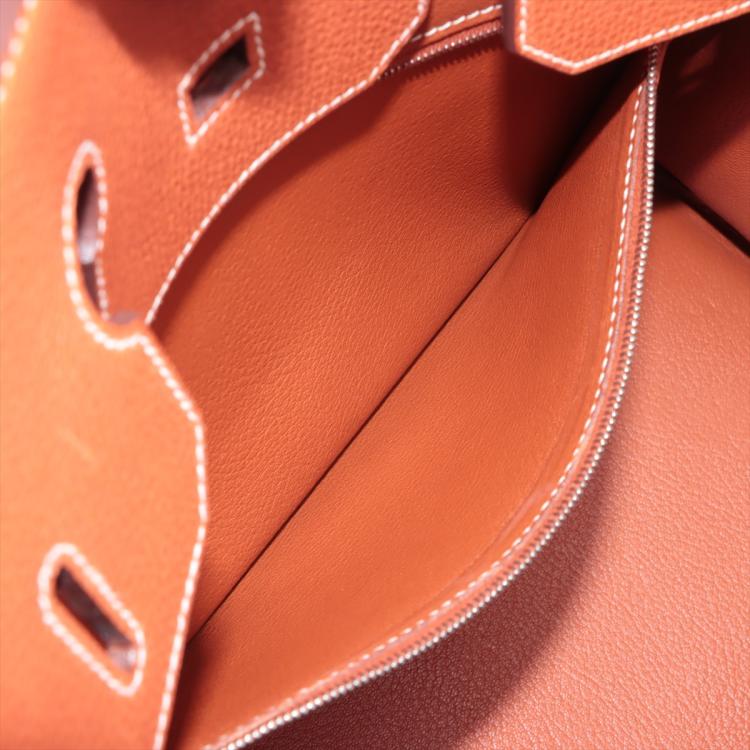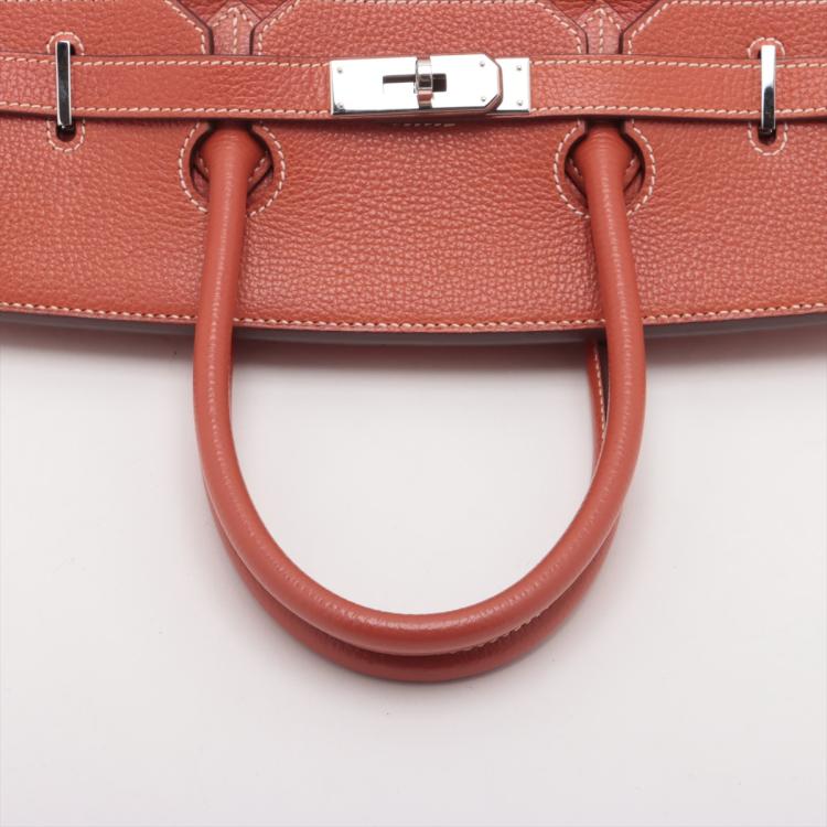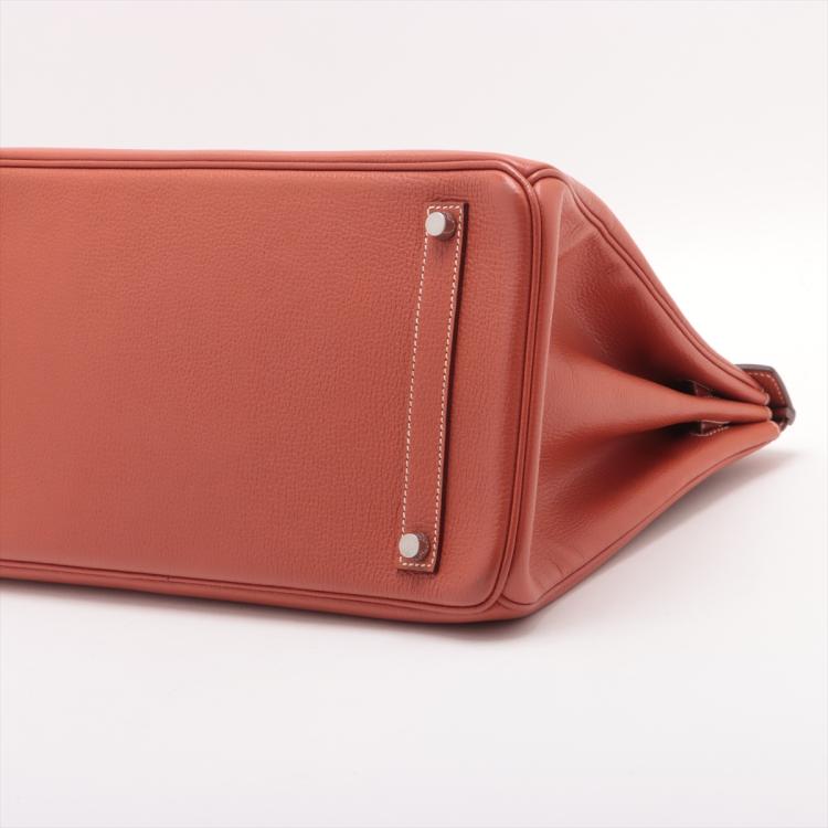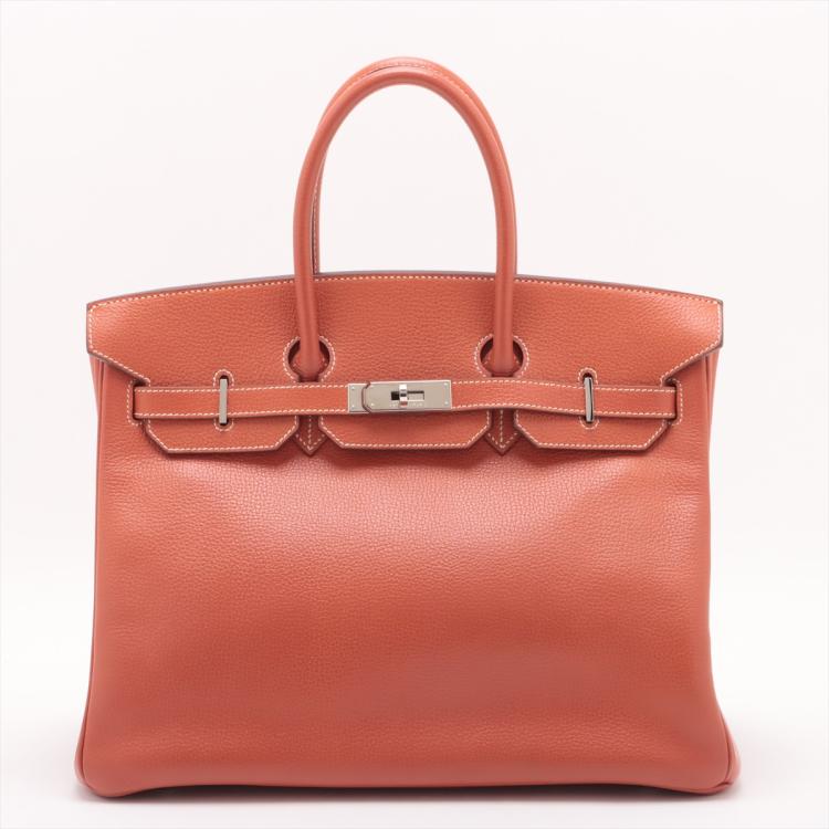 Hermès Birkin 35 in Brique Vache Liegee leather (square K: 2007). Featuring silver-toned hardware, rolled leather top handles, frontal flap with straps and turn-lock closure. The flap opens to a leather interior with zipper and patch pockets. Approximate dimensions: 34.5cm(L) x 26.5cm(H) x 18cm(D), handle drop 10.5cm. Accompanied by Hermès rain cover, clochette, keys and padlock. With Entrupy Certificate of Authenticity. (Pre-owned)