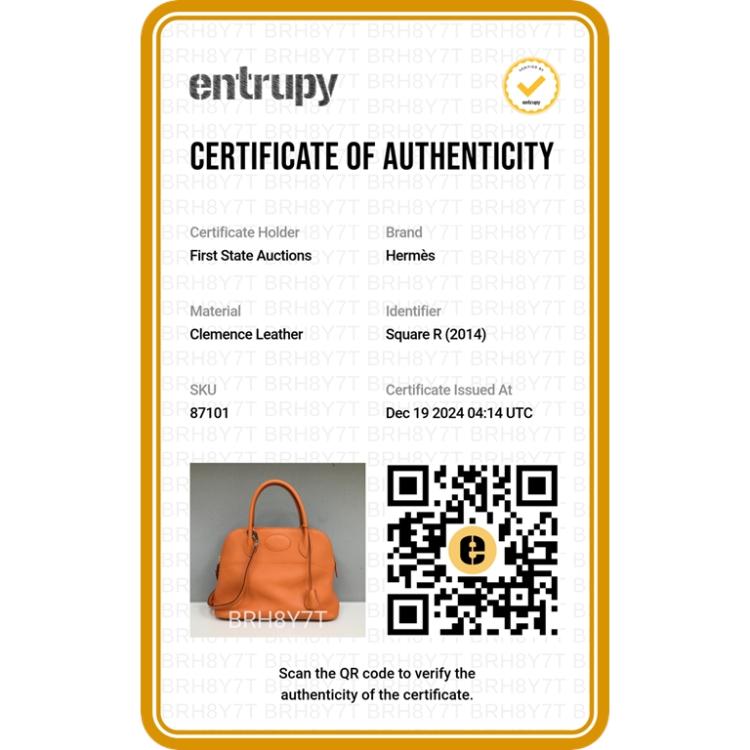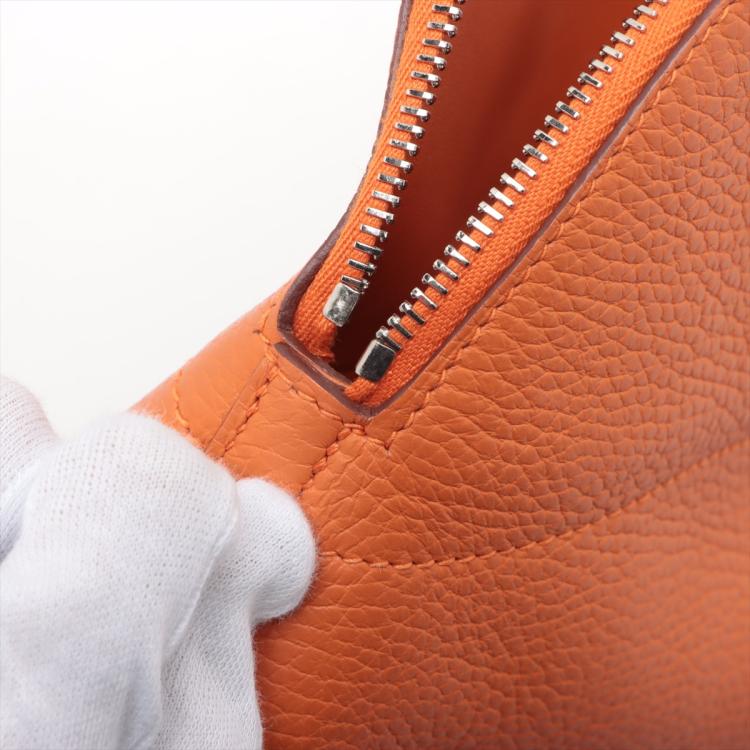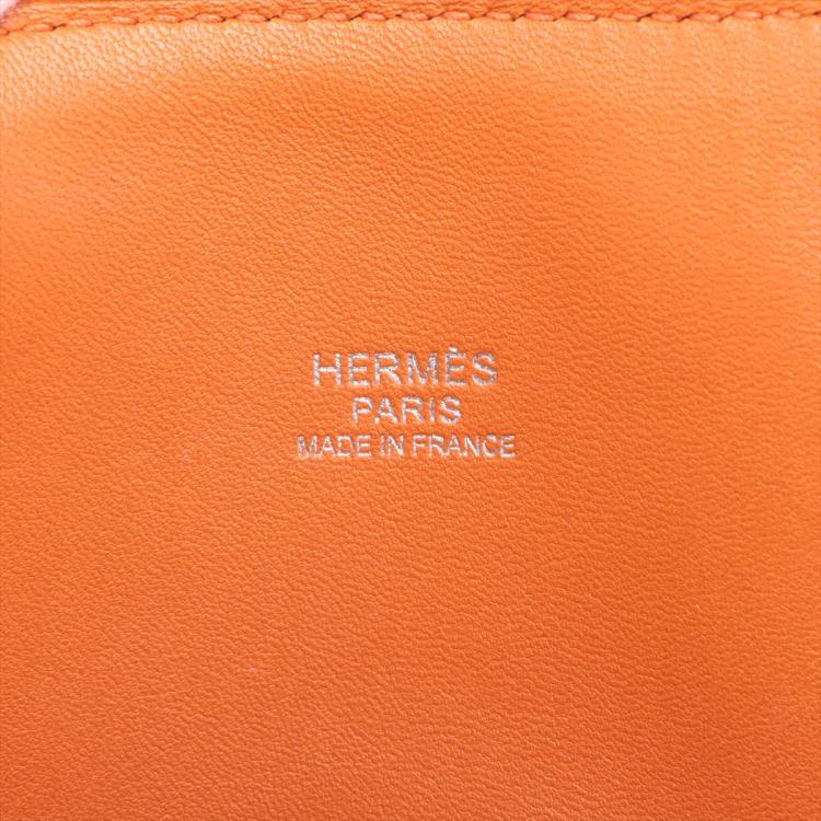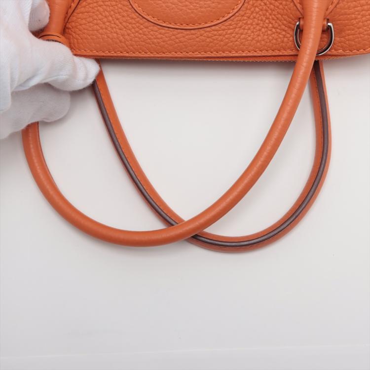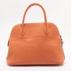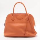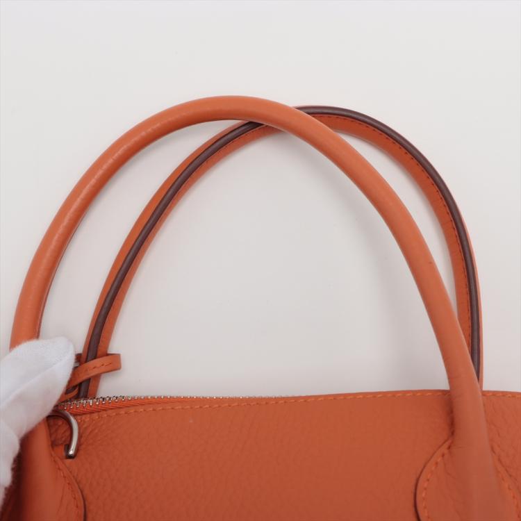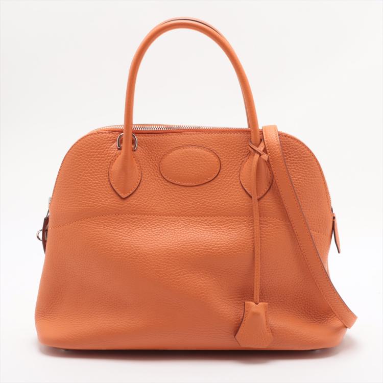Hermès Bolide 31 handbag in orange Taurillon Clemence (square R: 2014). Featuring silver-toned hardware, double top handles, and padlock with two keys inside a clochette. The zipper top opens to a matching orange smooth leather lining interior with a patch pocket. Approximate dimensions: 31.5cm(Base-L) x 23cm(H) x 12.5cm(D), handle drop 10cm shoulder drop: 43cm. Accompanied by Hermès dustbags. With Entrupy Certificate of Authenticity. (Pre-owned)