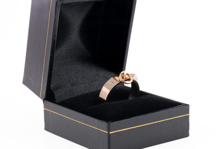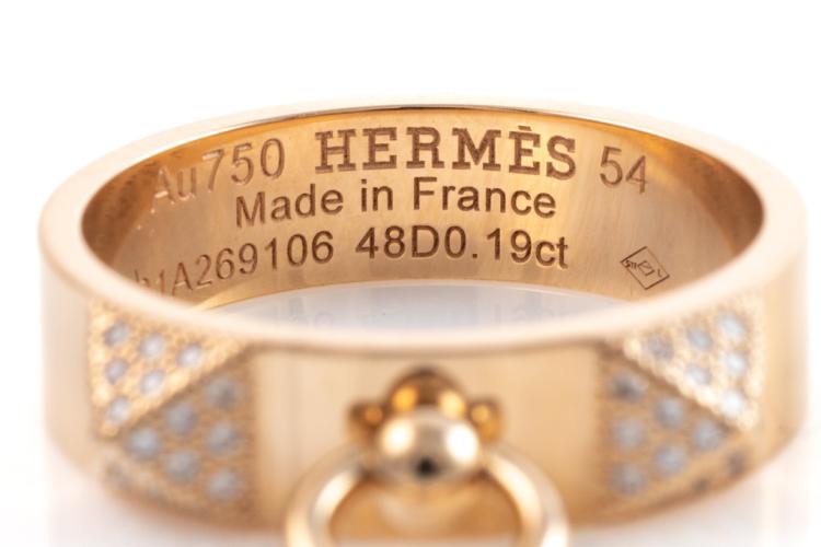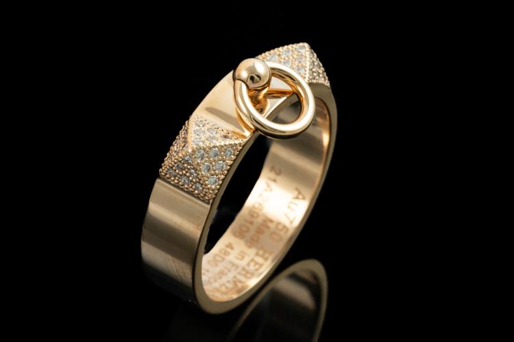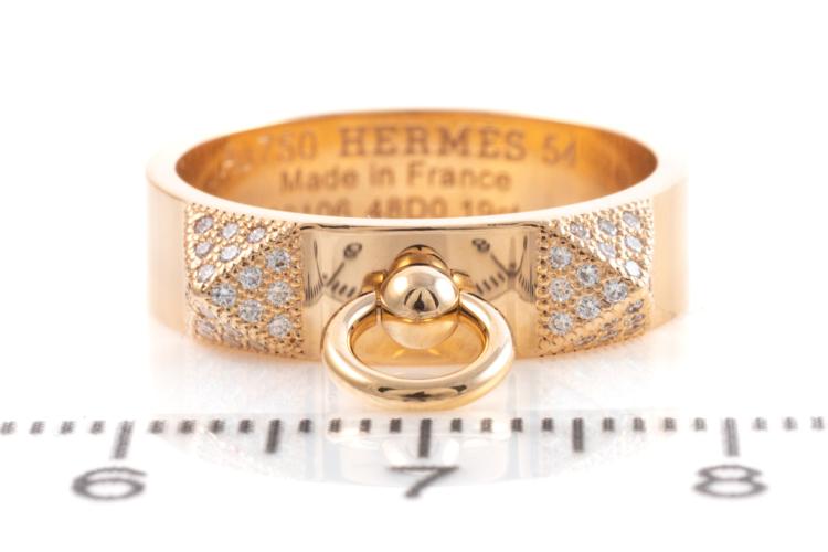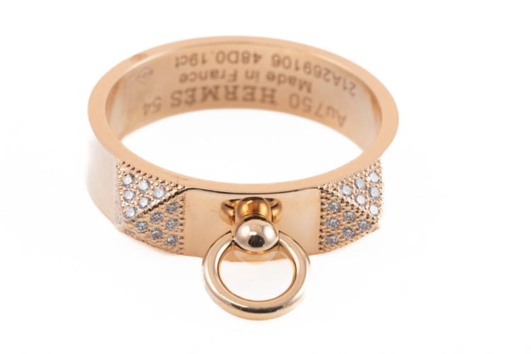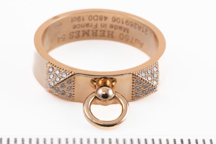Hermes Collier De Chien Diamond ring with round Natural Diamonds totalling 0.19ct. 18ct rose gold. Made in France. Hemes stamped size 54, N - ring resizing is not recommended. Weight: 6.1g. With Certificate #417312. (Pre-owned)