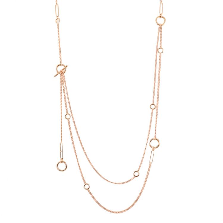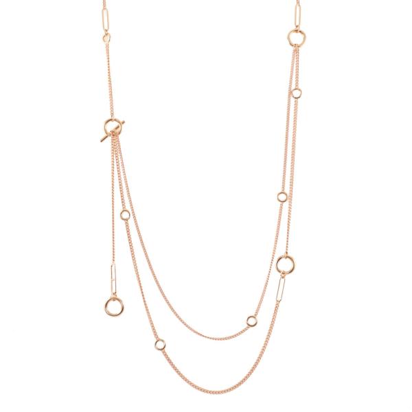 Hermes Echapee Long necklace with toggle closure, can be worn as a single, wrap around or lariat necklace for different looks. 18ct rose gold. Interior length circumference: 84.0cm. Exterior length circumference: 90.0cm. Made in France. Weight: 35.1g. With Certificate #419702. (Pre-owned)