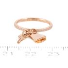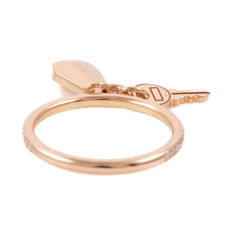 Hermes Kelly Clochette ring, small model with 32 round Natural Diamonds totalling 0.11ct. 18ct rose gold. Bell motif size: 0.92 x 0.38cm. Key motif size: 0.94 x 0.49cm. Stamped size 48, actual ring size: I - ring resizing is not recommended. Band Width: 1.7mm. Made in France. Weight: 3.1g. With Hermes box and pouch. (Pre-owned)