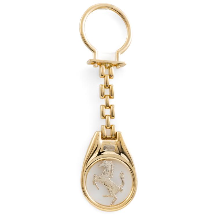 Gold keyring with horse motif. 18ct yellow gold. Italian made. Length: 9.0cm. Width: 25.0mm. Weight: 14.1g. (Pre-owned)