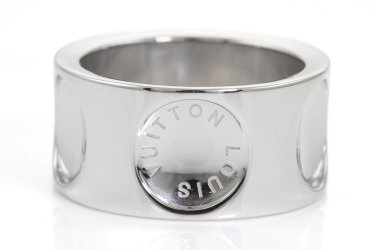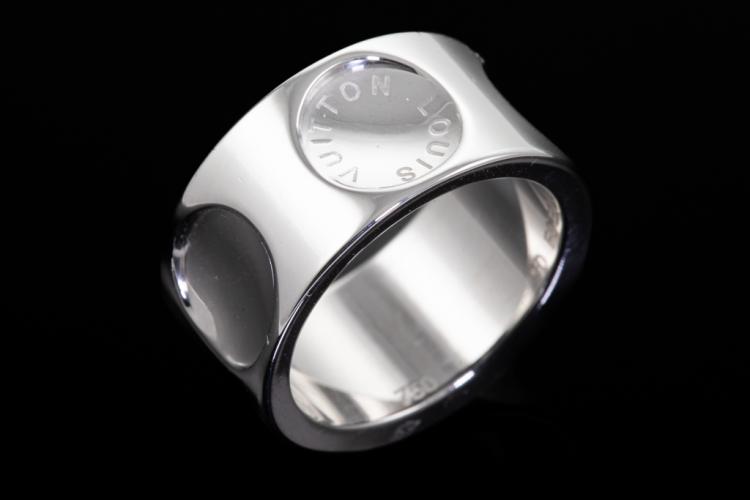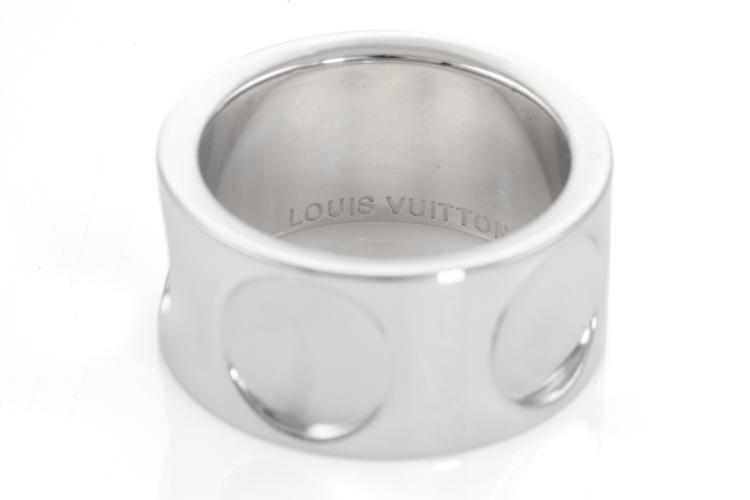 Louis Vuitton Large Empreinte Ring. 18ct white gold. Stamped size 50, K - ring resizing is not recommended. Width: 10.0mm. Weight: 13.4g. (Pre-owned)