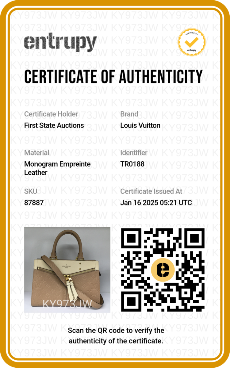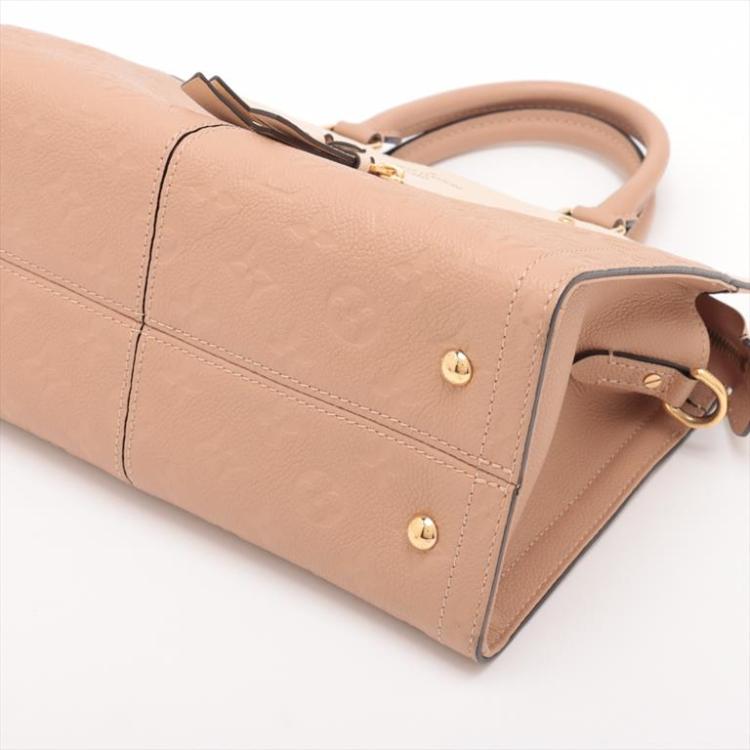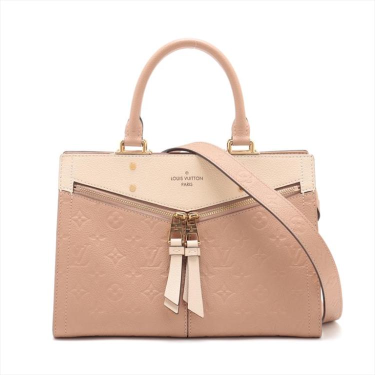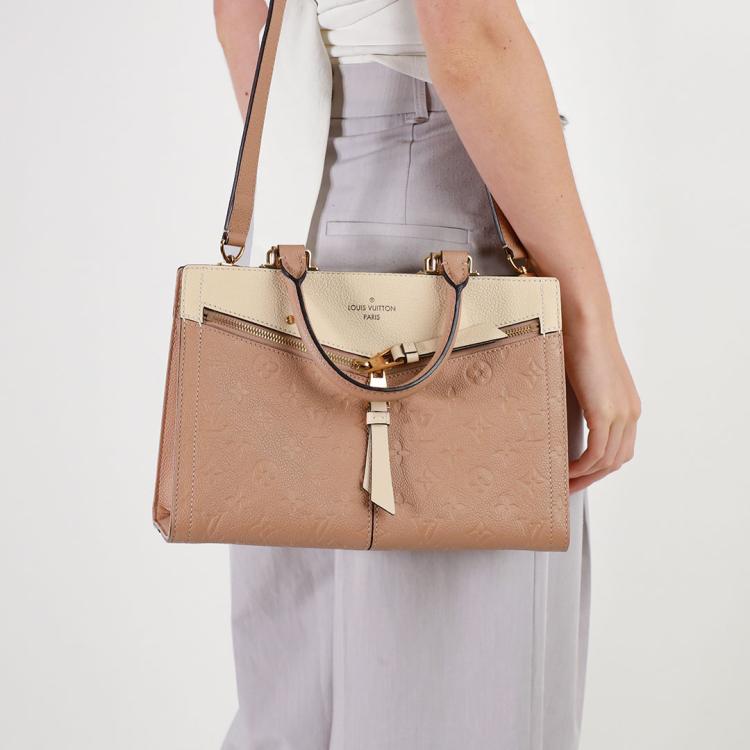 Louis Vuitton Sully PM in beige & lighter beige Monogram Empreinte leather, with black leather trims. Featuring gold-toned hardware, twin front zip pockets, dual rolled handles, and a detachable flat shoulder strap. The zipper closure opens to beige textile interior with two patch pockets. Approx dimensions: 29.5cm(Base-L) x 19.5cm(H) x 14cm(D), handle drop 12cm, strap drop 50cm. Accompanied by LV dustbags and box. With Entrupy Certificate of Authenticity. (Pre-owned)