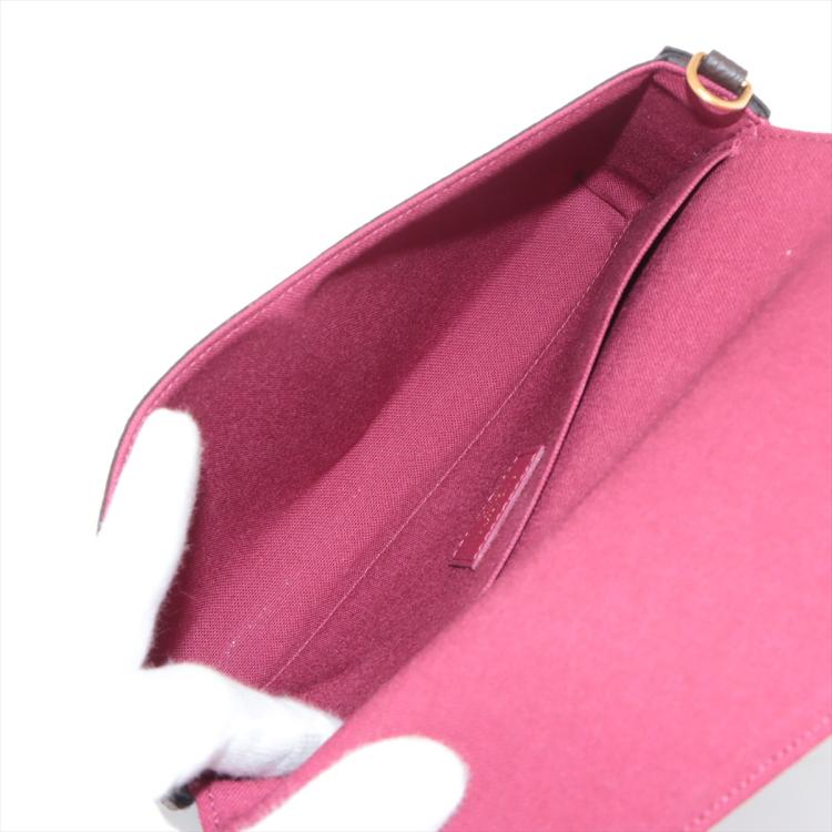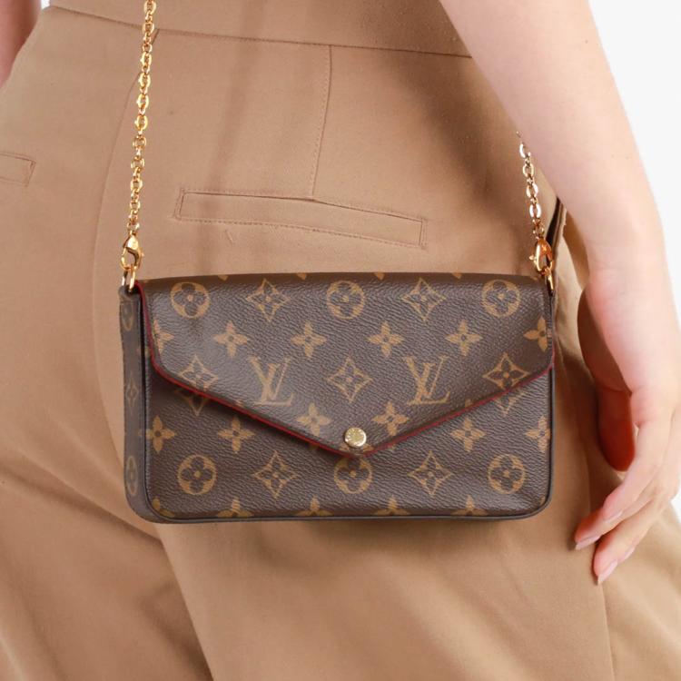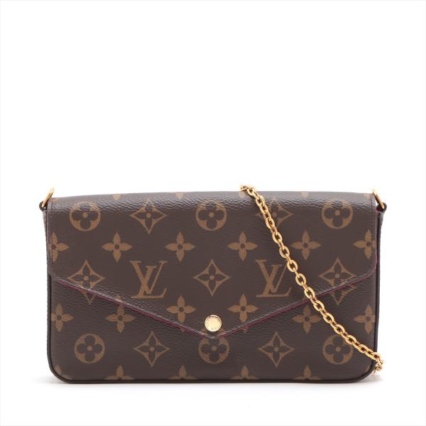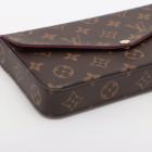 Louis Vuitton Félicie Pochette in Monogram coated canvas. Featuring gold-toned hardware and a detachable shoulder chain. The flap with snap button closure opens to a burgundy textile interior with a patch pocket. Approximate dimensions: 21cm(L) x 12cm(H) x 3cm(D), strap drop 55cm. Accompanied by separate zip pouch with matching burgundy leather interior, LV dustbag, and box. NOTE: card holder pocket NOT included. With Entrupy Certificate of Authenticity. (Pre-owned)