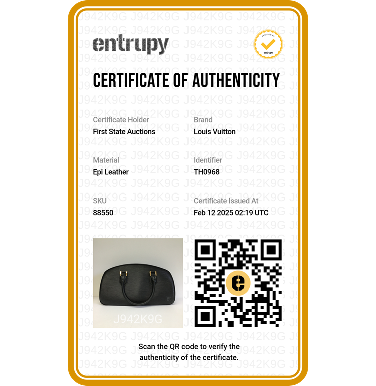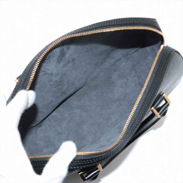 Louis Vuitton Jasmin bag in black Epi leather. Featuring gold-toned hardware, dual rolled leather handles, and a two way zipper closure. This opens to a grey microfibre interior with a patch pocket. Approximate dimensions: 32cm(L) x 18cm(H) x 10cm(D), handle drop 9.5cm. Accompanied by LV dustbag. With Entrupy Certificate of Authenticity. (Pre-owned)