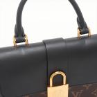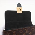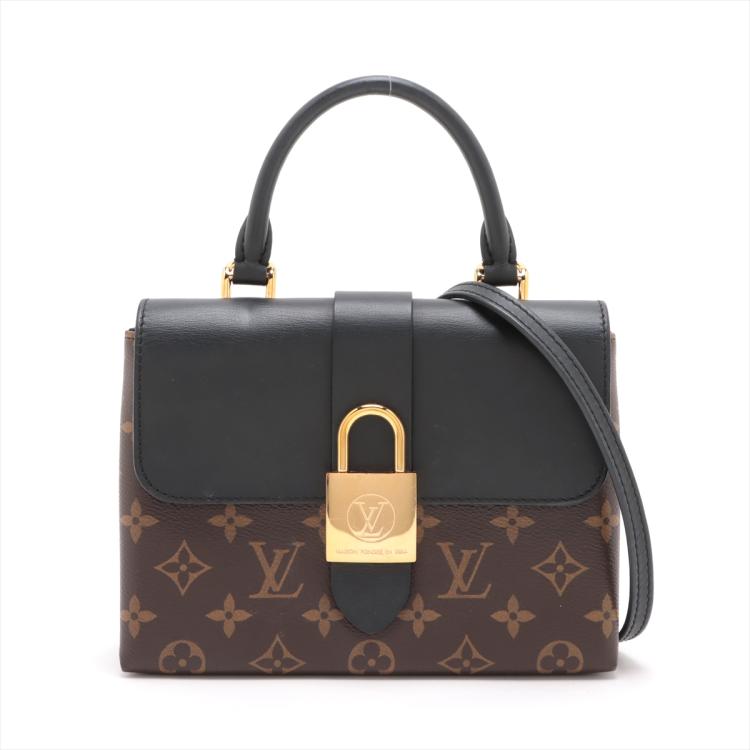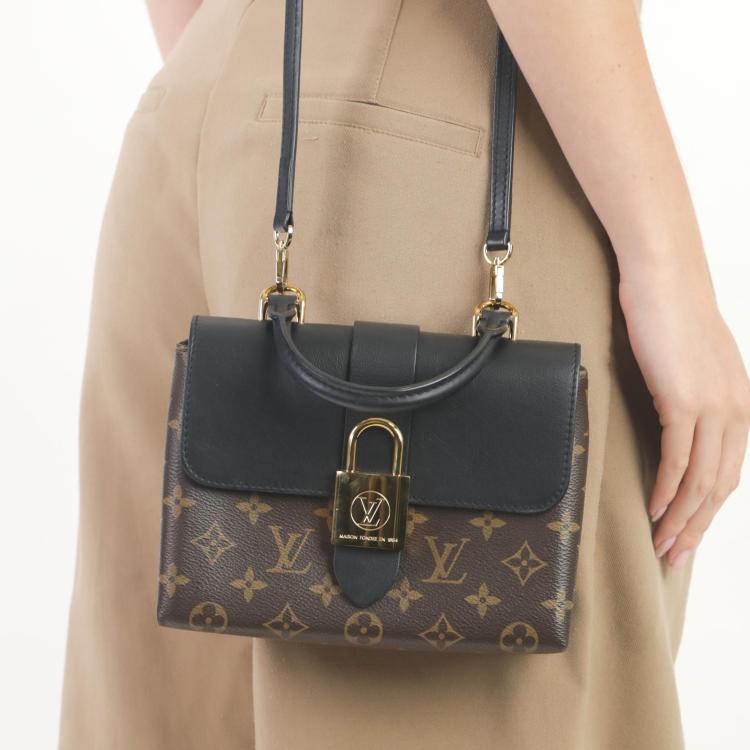 Louis Vuitton Locky BB in Monogram coated canvas and smooth black cowhide leather. Featuring gold-toned hardware, single rolled top handle, adjustable and detachable shoulder strap, and front flap with magnetic padlock closure. This opens to a black suede interior with a patch pocket. Approximate dimensions: 21cm(L) x 16cm(H) x 7.5cm(D), handle drop 8cm, strap drop 59cm. Accompanied by LV dustbag and box. With Entrupy Certificate of Authenticity. (Pre-owned)