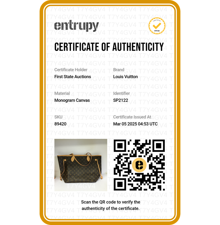 Louis Vuitton Neverfull MM in monogram coated canvas. Featuring gold-tone hardware, natural cowhide-leather trim, dual top flat handles, and side laces. The hook closure opens to a beige textile interior with a zipper pocket. Approximate dimensions: 33cm(Base-L) x 29cm(H) x 16cm(D), handle drop 22cm. With Entrupy Certificate of Authenticity. (Pre-owned)