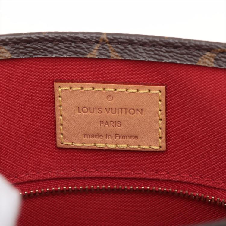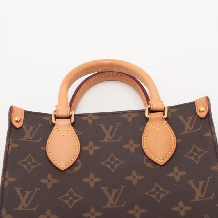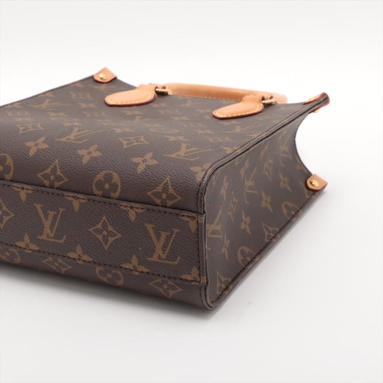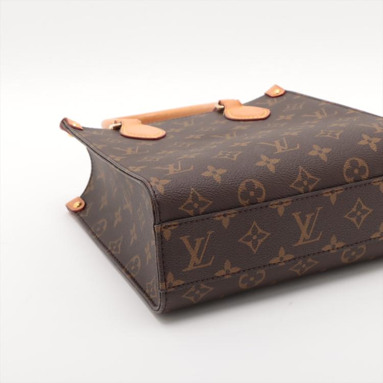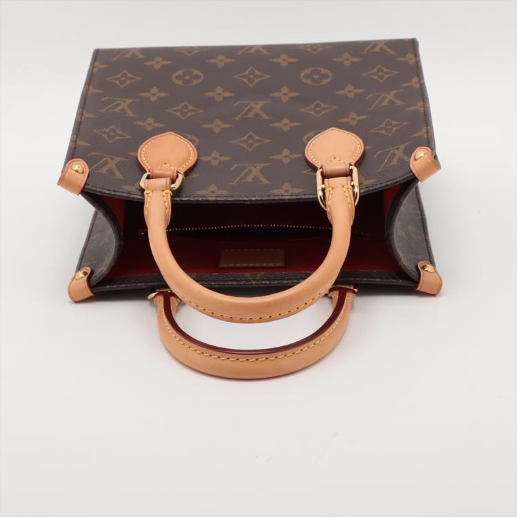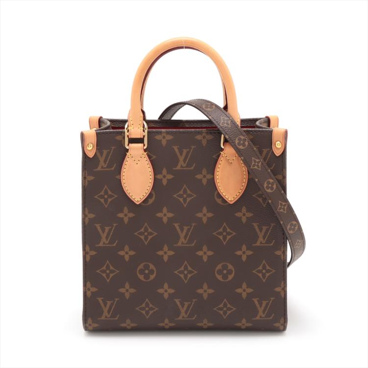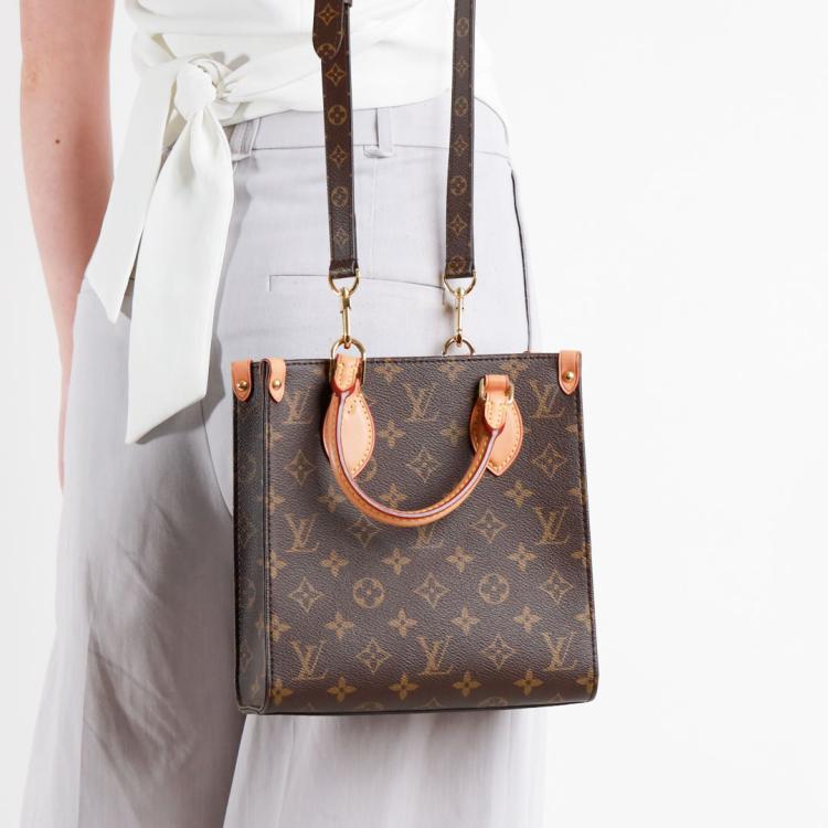 Louis Vuitton Sac Plat BB in Monogram coated canvas with natural cowhide leather trim. Featuring gold-tone hardware, dual rolled handles, and a removable and adjustable shoulder strap. The open top reveals to a red textile lining interior with a zipper pocket. Approximate dimensions: 21.5cm(L) x 22cm(H) x 9cm(D), 9cm handle drop and 50cm strap drop. With Entrupy Certificate of Authenticity. (Pre-owned)