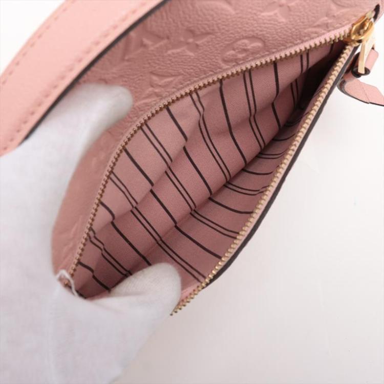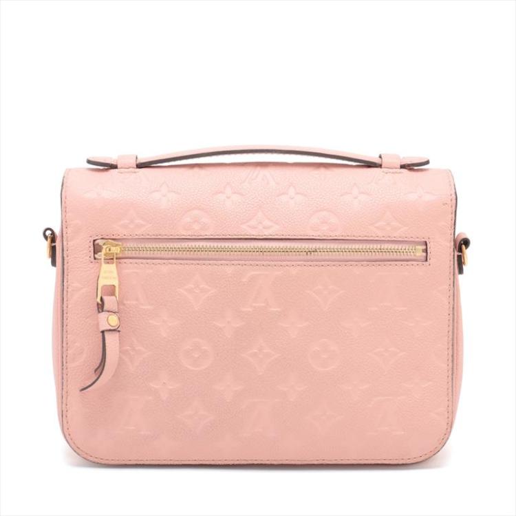 Louis Vuitton Pochette Metis handbag in pink Monogram Empreinte leather. Featuring gold-tone hardware, single flat leather top handle, an exterior zipper pocket at back, and an optional shoulder strap. The frontal flap with S-lock closure opens with 2 compartments and a patch pocket. Approximate dimensions: 24.5cm(L) x 19cm(H) x 8cm(D), handle drop: 2.5cm, strap drop: 55cm, adjustable. Accompanied by a LV dust bag. With Entrupy Certificate of Authenticity. (Pre-owned)