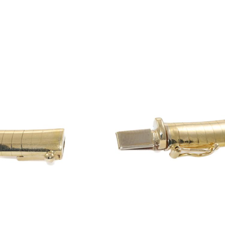 Omega 18ct yellow gold necklace. Inner circumference: approximately 42cm. Width: 5.2mm. Weight: 38.4g. With Evaluation Certificate #419383. (Pre-owned)