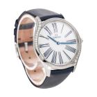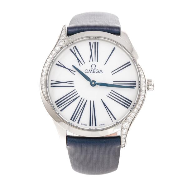 Omega De Ville Tresor stainless steel quartz watch. White dial, Diamonds on bezel to lugs, case diameter: 36mm, strap length: 18cm, Swiss made. Ref# 428.17.36.60.04.001. With Omega blue satin & leather strap and buckle. With Certificate of Authenticity, Omega International Warranty card dated 23/02/2021, Pictograms card, Precious Stones Certificate card and Omega box. Balance of 5 year Omega manufacturer warranty applies. (Pre-owned)