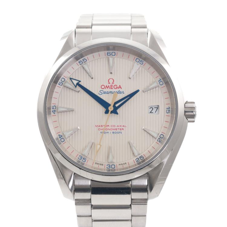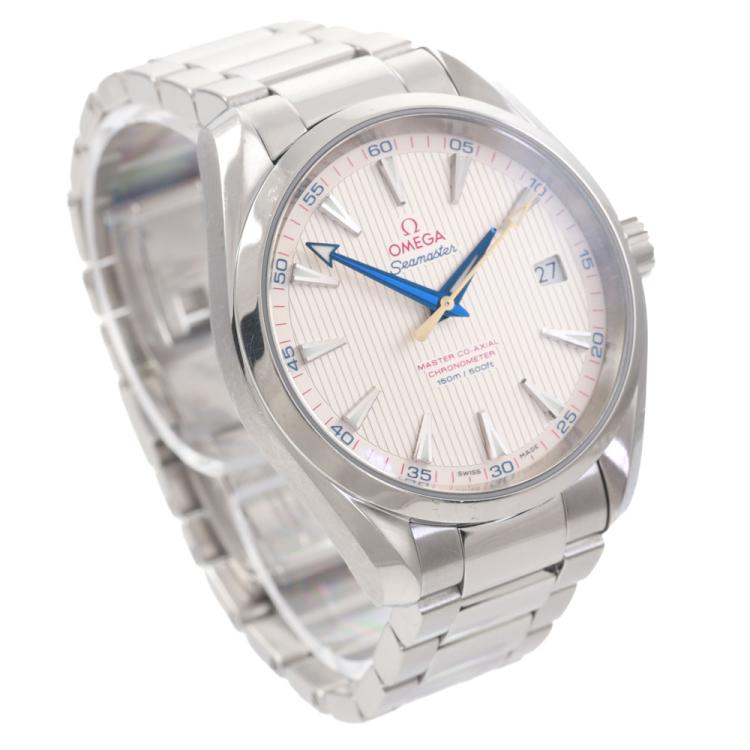 Omega Seamaster Aqua Terra Master Co-Axial stainless steel automatic mens watch. Silver dial, date, case diameter: 41.5mm, wrist size: 17.5cm, Swiss made. Ref# 231.10.42.21.02.002. With Omega stainless steel bracelet and clasp. With Certificate of Authenticity. 3 month FSA warranty (Pre-owned)