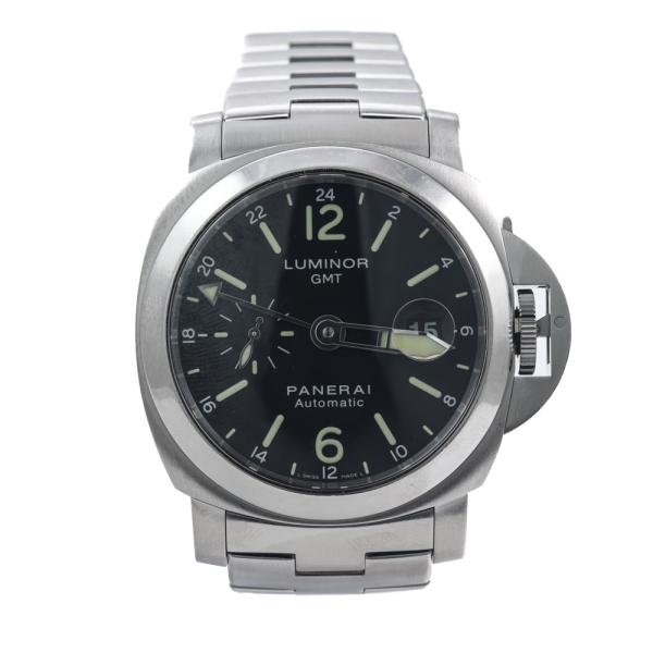 Panerai Luminor GMT Limited Edition of 600 stainless steel automatic mens watch. Black dial, date, small second, case diameter: 44mm, wrist size: 16cm, Swiss made. Ref #PAM00297/OP6761. With Panerai stainless steel bracelet and clasp. With Certificate of Authenticity. 3 month FSA warranty. (Pre-owned)