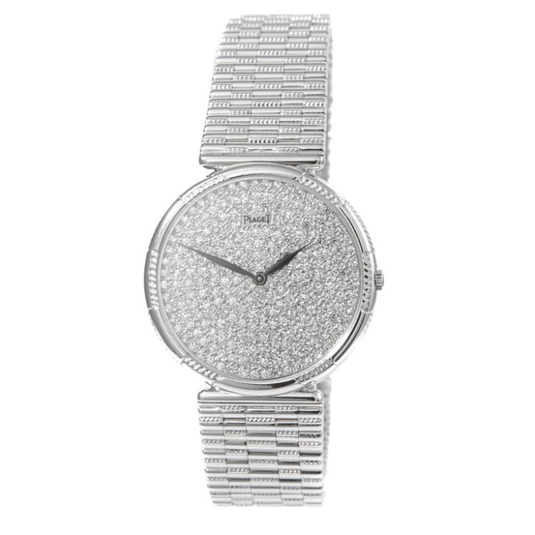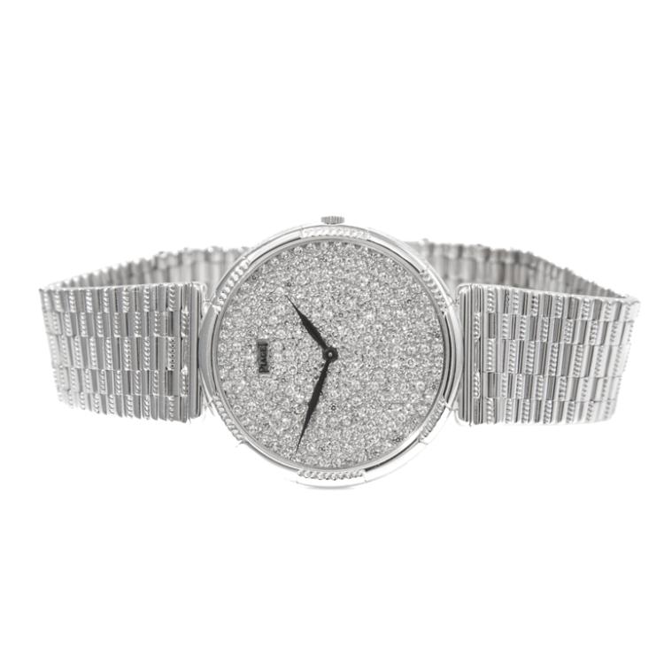 Piaget 18ct white gold manual winding watch. Diamond set dial, approximate case diameter: 31mm, wrist size: 20cm, Swiss made. Ref #2025G2. With Piaget 18ct white gold bracelet and clasp. With Certificate of Authenticity. 3 month FSA warranty. (Pre-owned)