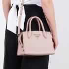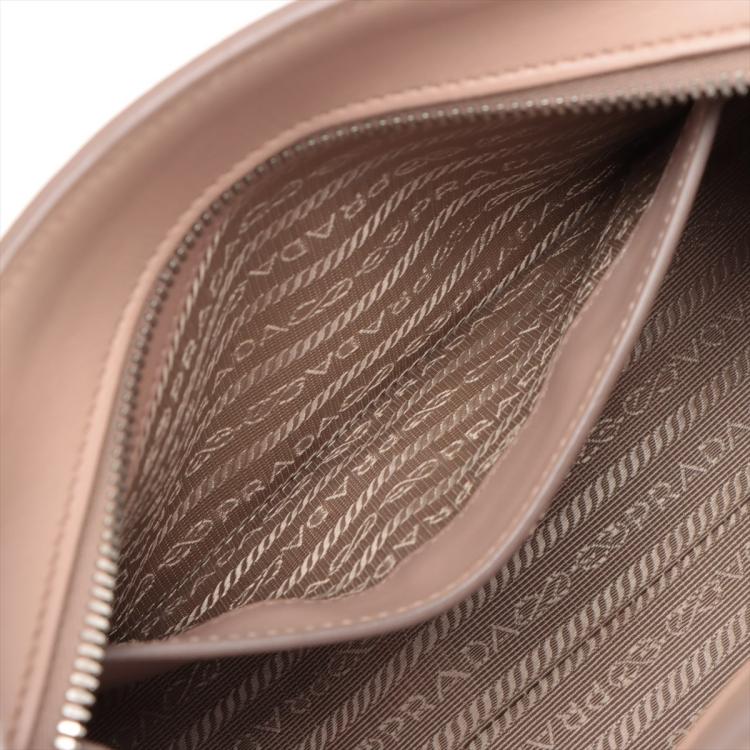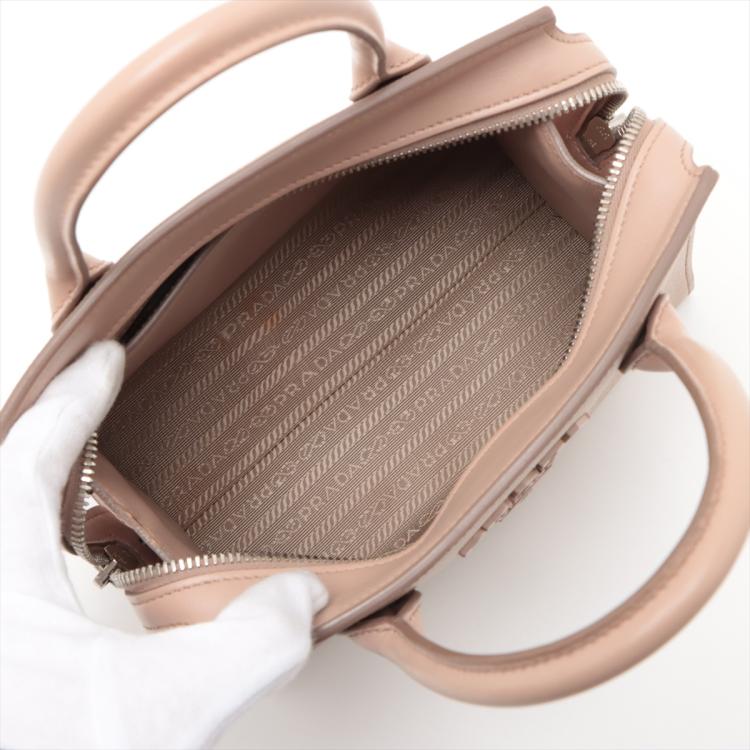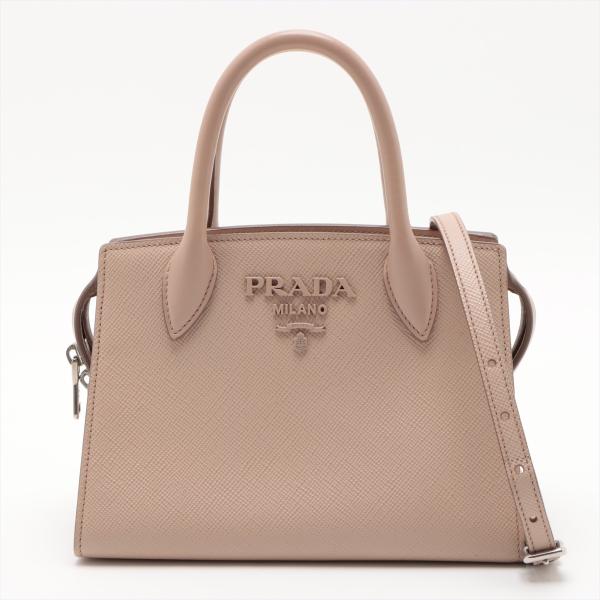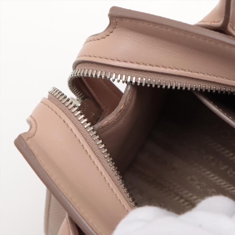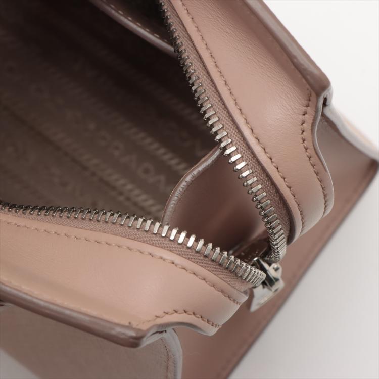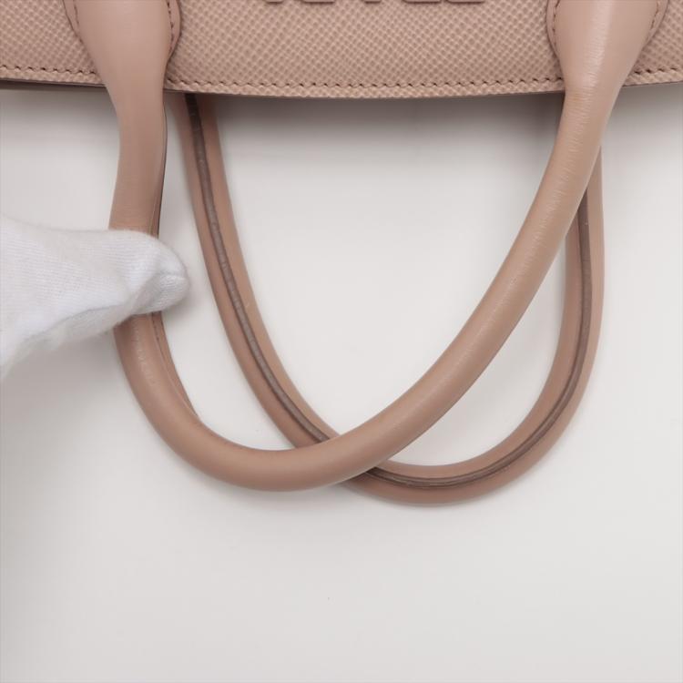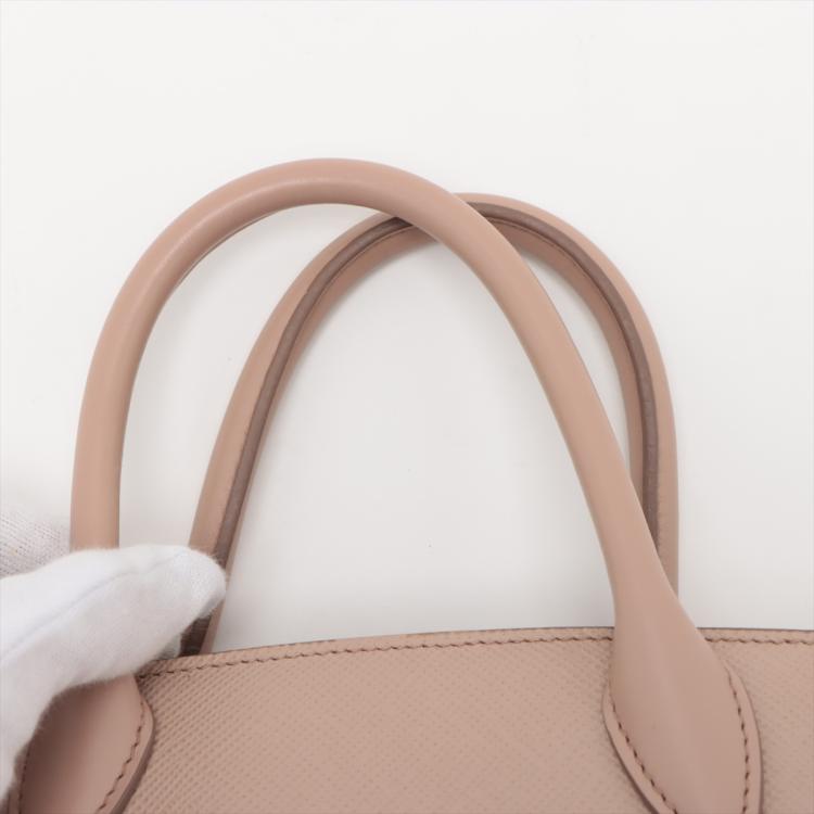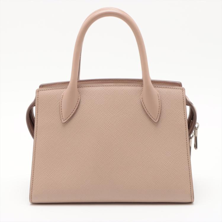 Prada small Monochrome top handle bag in beige Saffiano leather bag. Featuring leather top handles, silver tone hardware, painted metal letter logo at front. The top with zipper closure opens to a logo stitched nylon lining interior with a patch pocket. Approx. dimensions: 22cm(B-L) x 15.5cm(H) x 12.5cm(D), 9cm handle height, 53cm strap drop, adjustable. Accompanied by a detachable leather coin purse. With Entrupy Certificate of Authenticity. (Pre-owned)