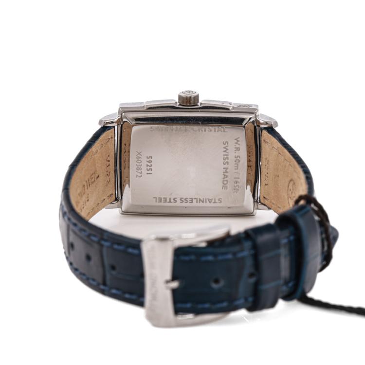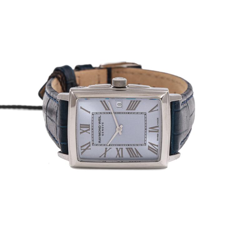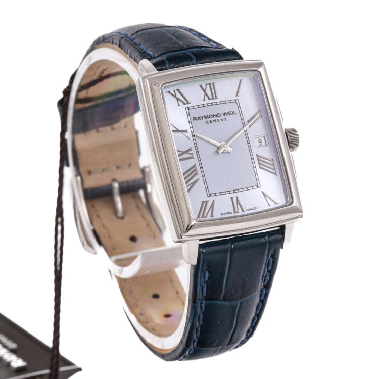 Raymond Weil Toccata stainless steel quartz ladies watch. Blue dial, date, case diameter: 22.6mm x 28.1mm, strap length including case: 17cm, Swiss made. Ref# 5925-STC-00550. With Raymond Weil black leather strap and buckle. With Raymond Weil Guarantee card and Raymond Weil box. 12 month FSA warranty (As new, Note: minor scratches on case and minor wear marks on strap due to being display stock)