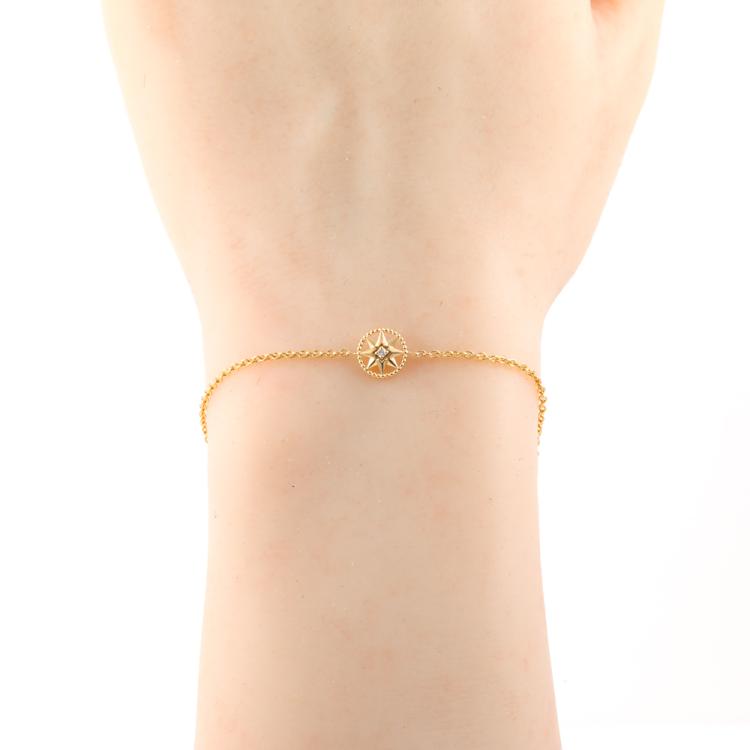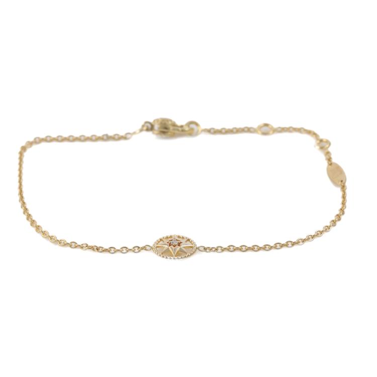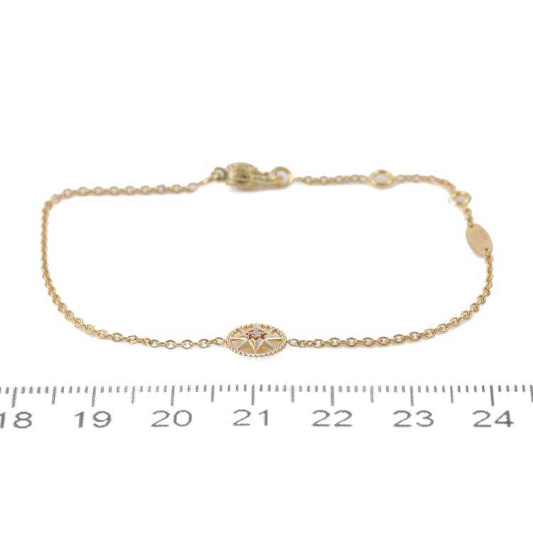 Rose Des Vents bracelet with a round Natural Diamond of 0.04ct. Lucky star motif size 7.8mm. 18ct yellow gold. Adjustable length: 15.0cm - max 18.0cm. Weight: 2.3g. (Pre-owned)