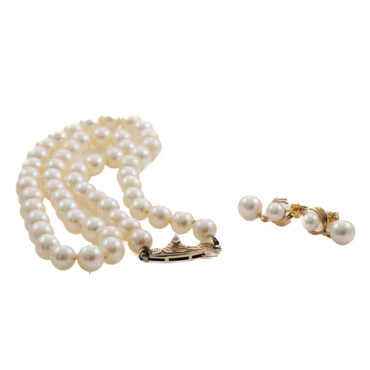 Set of Akoya Pearl Necklace and Pearl