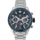 TAG Heuer Carrera stainless steel and ceramic automatic mens watch. Blue chronograph dial, date, case diameter: 43mm, wrist size: 20.5cm, Swiss made. Ref# CBG2011. With TAG Heuer stainless steel bracelet and clasp. With Certificate of Authenticity and TAG Heuer box. 3 month FSA warranty (Pre-owned)