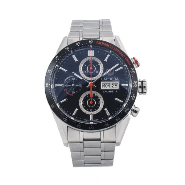 TAG Heuer Carrera Monaco Grand Prix Limited Edition of 3000 stainless steel automatic mens watch. Black chronograph dial, day & date, case diameter: 43mm, wrist size: 20.5cm, Swiss made. Ref# CV2A1F. With TAG Heuer stainless steel bracelet and clasp. With Certificate of Authenticity, TAG Heuer International Guarantee card dated 29/01/2013, Copy of TAG Heuer Duty Free Invoice dated 29/01/2013 and TAG Heuer box. 3 month FSA warranty (Pre-owned)