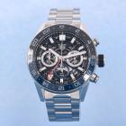 TAG Heuer Carrera Twin-Time GMT chronograph stainless steel automatic mens watch. Skeleton dial, date, case diameter: 45mm, wrist size: 21cm, Swiss made. Ref# CBG2A1Z. With TAG Heuer stainless steel bracelet and clasp. With Certificate of Authenticity. 3 month FSA warranty. (Pre-owned)
