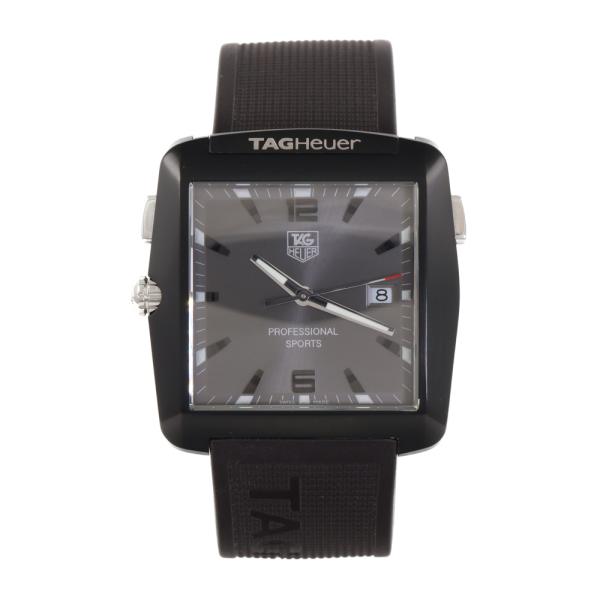 TAG Heuer Professional Golf Sports stainless steel and titanium quartz mens watch. Grey dial, date, case size 37.5mm x 36.7mm, stretchable wrist size: 18cm, Swiss made. Ref# WAE1113.FT6004. With TAG Heuer black silicon elastic strap. With Certificate of Authenticity and TAG Heuer box. No warranty applies. (Pre-owned)