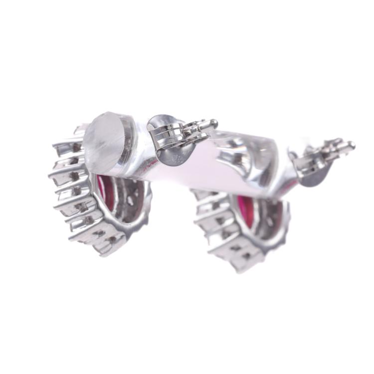 Thai Ruby and Diamond Cluster Earrings