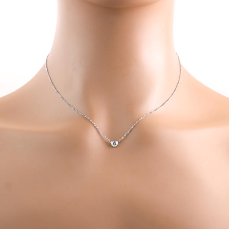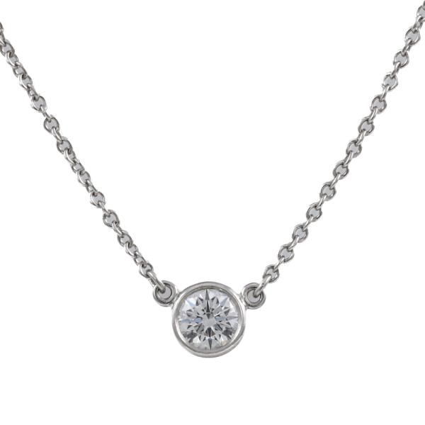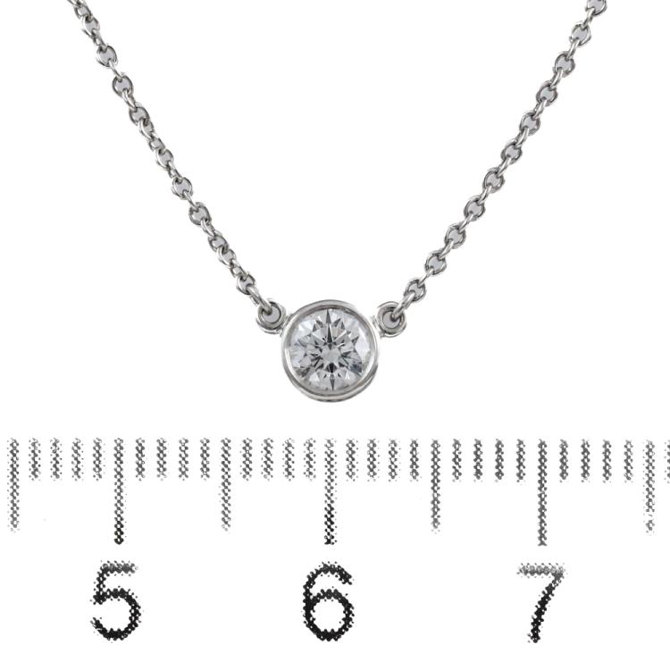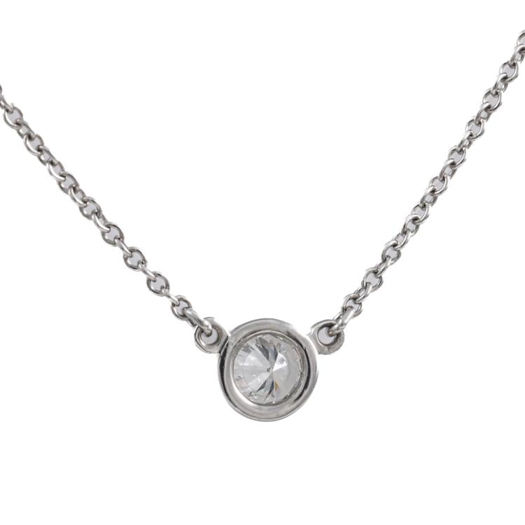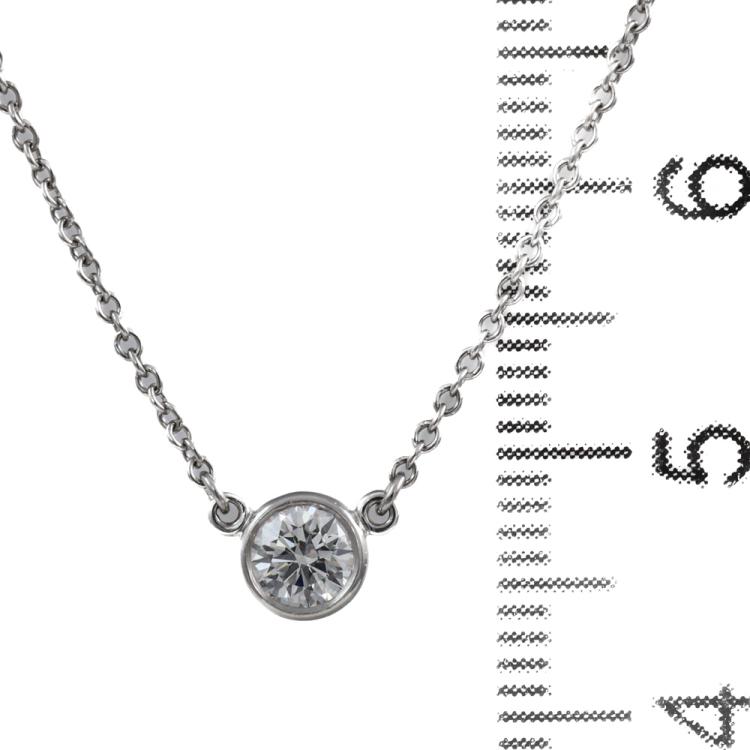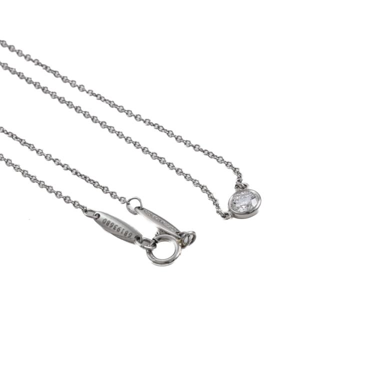 Tiffany & Co Elsa Peretti Diamonds by the Yard single Diamond pendant with a round Natural Diamond of 0.21ct (with Tiffany & Co Diamond Certificate graded as G VVS2 #68193680/U07080990). Platinum 950 with 41cm Tiffany & Co platinum 950 attached chain. Weight: 2.4g. With Tiffany & Co Box. (Pre-owned)