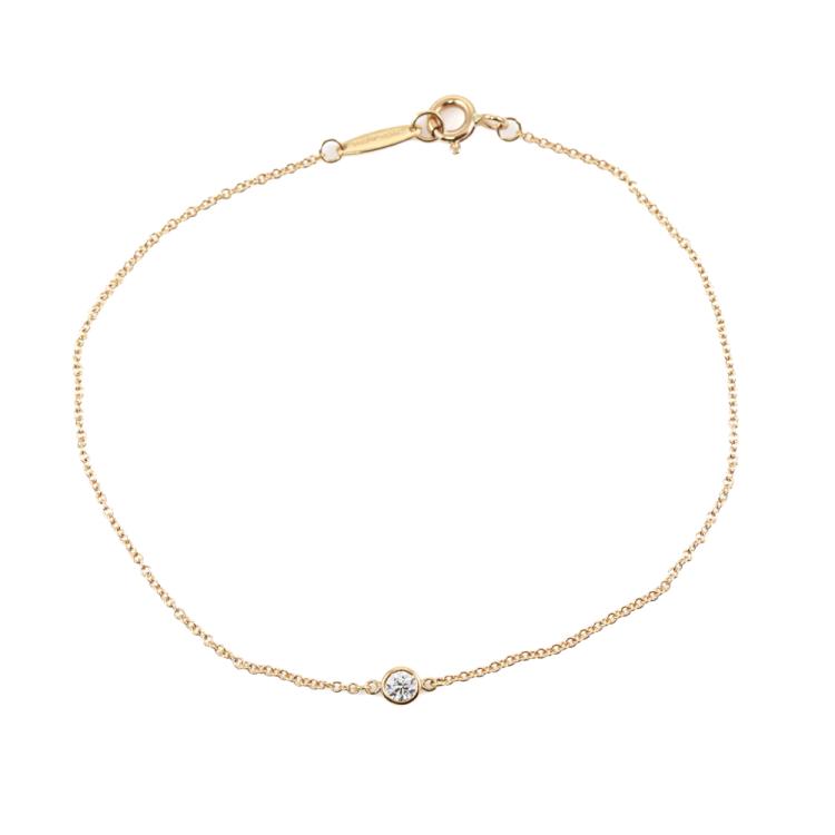 Tiffany & Co Elsa Peretti Diamond by The Yard bracelet with single round Natural Diamond of approximately 0.08ct. 18ct yellow gold. Length: 19cm. Weight: 0.9g. With Tiffany Box. (Pre-owned)