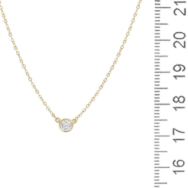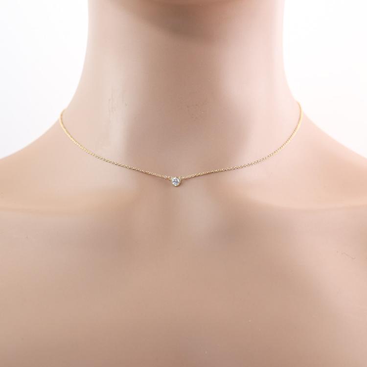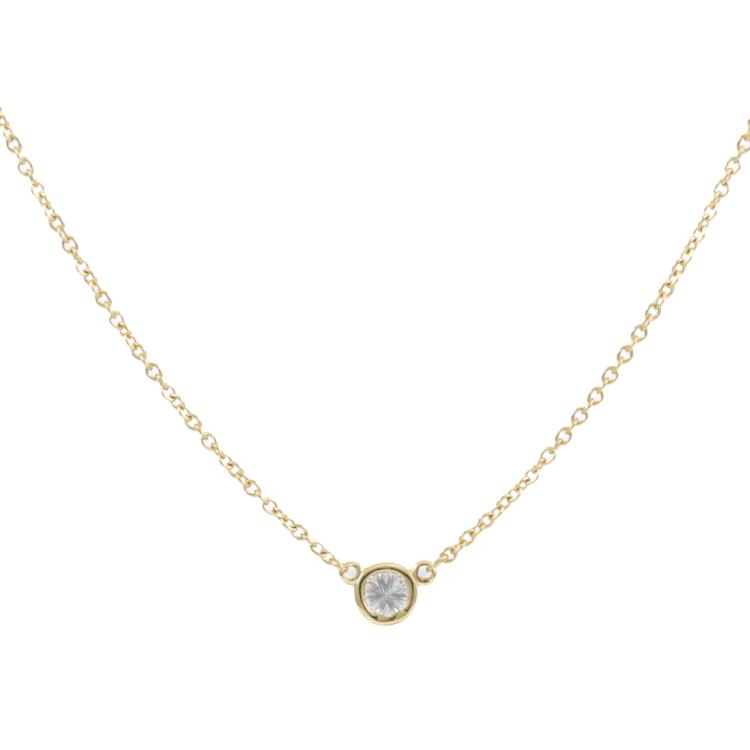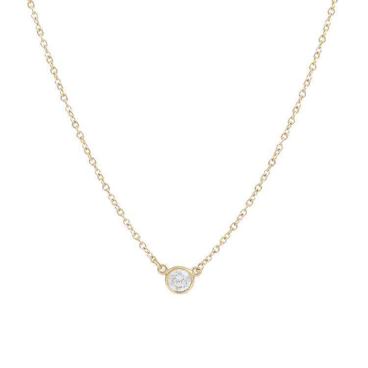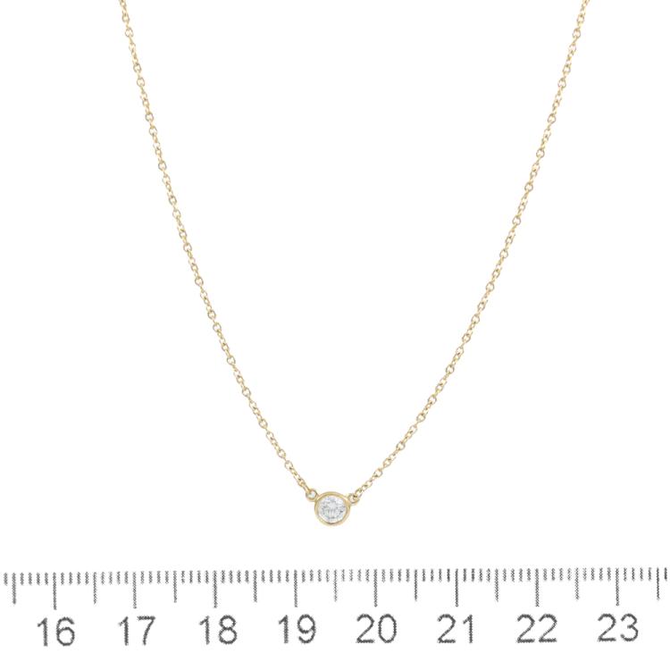Tiffany & Co. Elsa Peretti Diamonds by the Yard single Diamond pendant with a round Natural Diamond of 0.17ct. 18ct yellow gold with Tiffany & Co 18ct yellow gold attached chain. Length: 40cm. Weight: 1.8g. (Pre-owned)